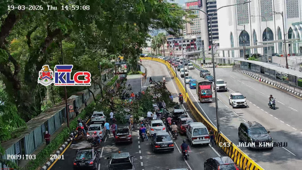 Dahan serkah patah di Jalan Kinabalu Masjid Negara ke susur Jalan Raja. 3 lorong kiri terhalang. Mohon bantuan UNIT Kecemasan DBKL ke lokasi. Polis Trafik menghala ke lokasi.