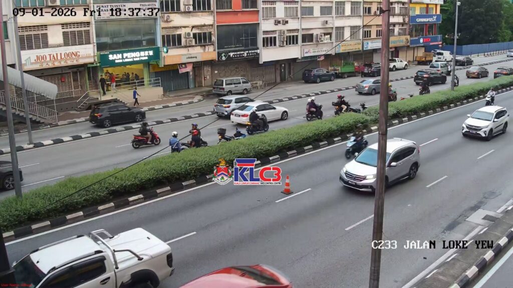 Terdapat kemalangan motorsikal dilokasi dari arah Maharajalela ke Jalan Loke Yew, lorong kanan terhalang, aliran trafik perlahan dilokasi. Warden Trafik DBKL dilokasi.