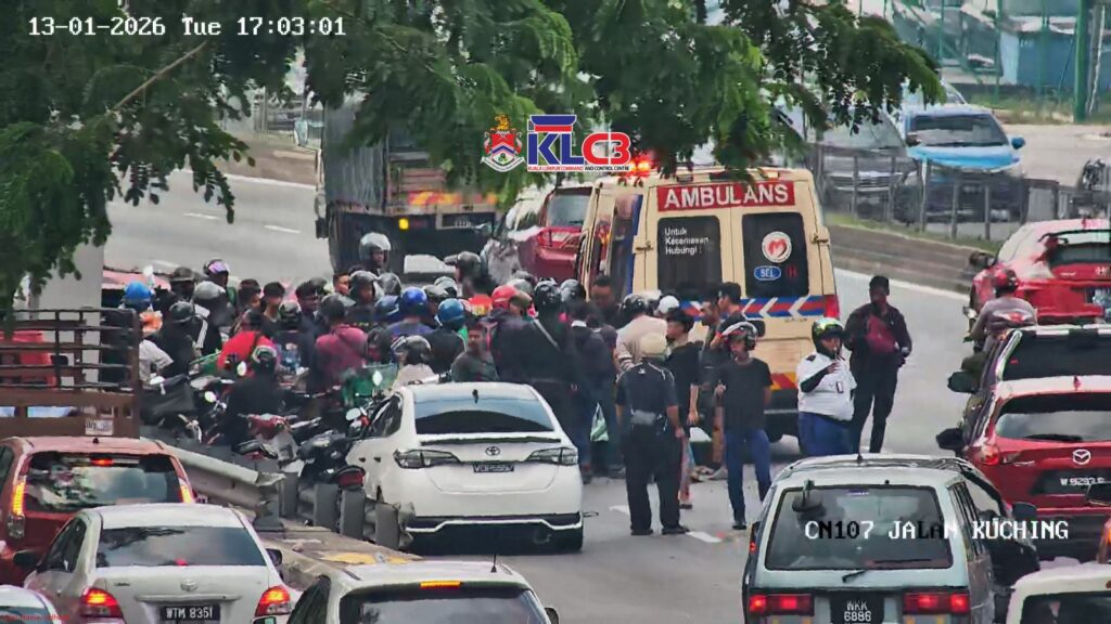 Terdapat kemalangan motorsikal, lori dan kereta dilokasi selepas Bulatan Batu Caves menghala ke Selayang,lorong kiri terhalang, aliran trafik perlahan dilokasi.Ambulans dilokasi.