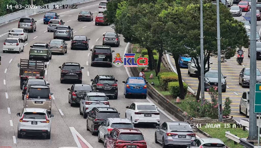 Kemalangan motorsikal dan kereta di lokasi selepas susur keluar dari Tol Jalan Loke Yew menghala ke Jalan Istana, lorong kanan terhalang, aliran trafik perlahan di lokasi