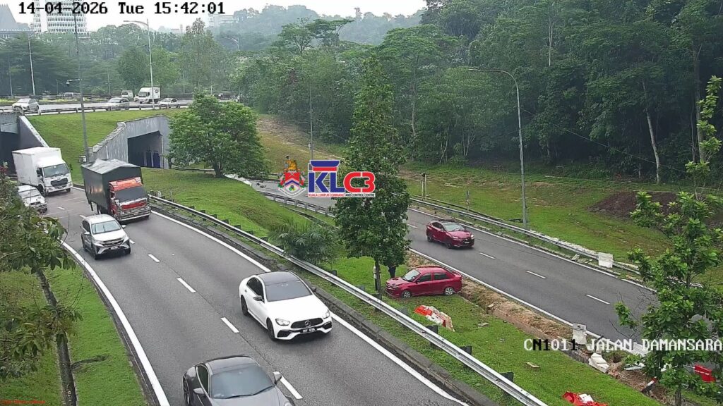 Sebuah kenderaan terbabas di lokasi terowong Duta Baru menghala ke Damansara, tiada lorong terhalang, aliran trafik perlahan di lokasi.