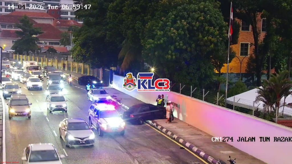 Kemalangan kereta terbabas di Jalan Tun Razak (Kedutaan Iraq) ke susur Jejambat Langgak Golf / Jalan Bukit Bintang. Lorong kiri terhalang. Aliran trafik perlahan ke lokasi. Polis Trafik dan Renjer KLC3 04 di lokasi.