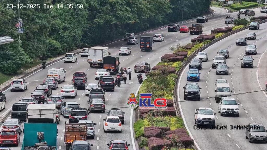 Kemalangan kereta dan motorsikal dilokasi selepas susur Travers menghala ke L/Raya Sultan Iskandar, lorong kanan terhalang, aliran trafik perlahan dilokasi, Polis trafik di lokasi