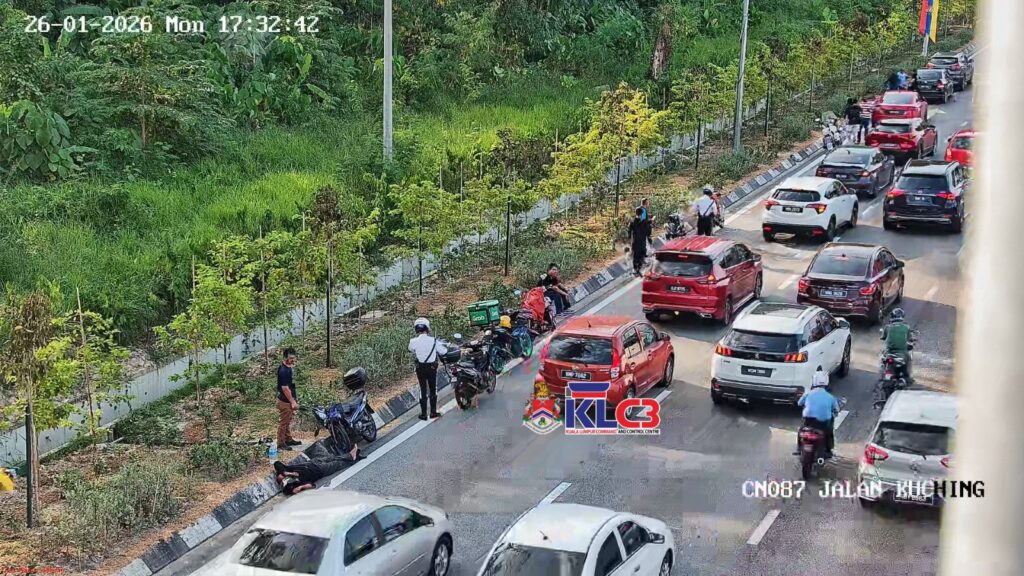 Kemalangan motorsikal dan kereta dilokasi selepas susur Pengasih menghala ke Bulatan Segambut, lorong kiri terhalang, aliran trafik perlahan dilokasi, Polis trafik dilokasi.