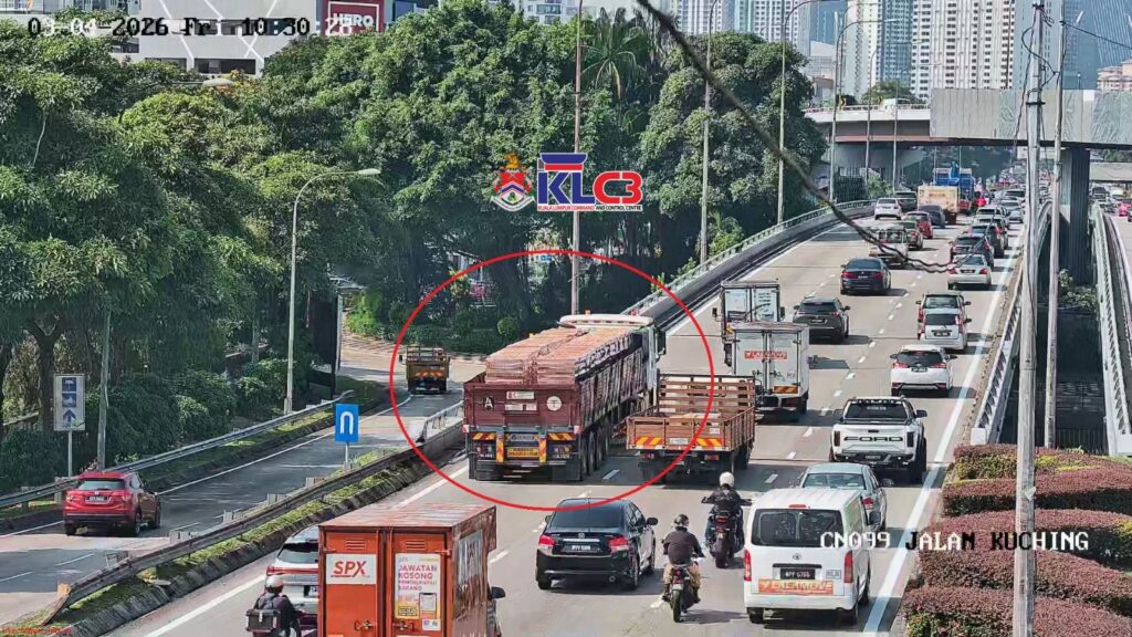 Sebuah lori rosak di lokasi atas Bulatan Kepong menghala ke Bulatan Segambut, lorong kiri terhalang, aliran trafik perlahan di lokasi