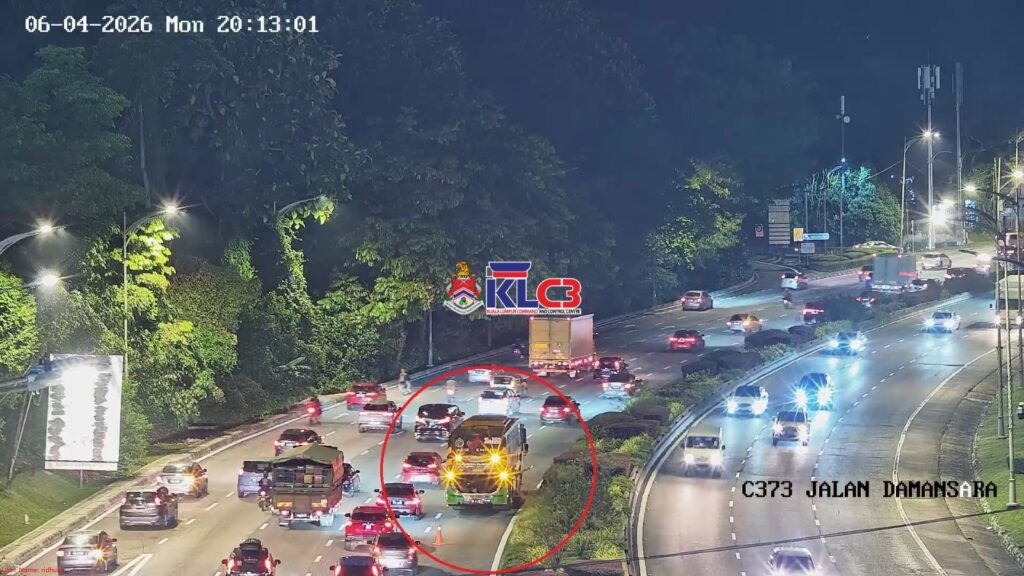 Jalan Damansara: Sebuah bas rosak di lokasi dari arah Muzium Negara menghala ke L/Raya Sultan Iskandar, lorong kanan terhalang, aliran trafik perlahan di lokasi.
