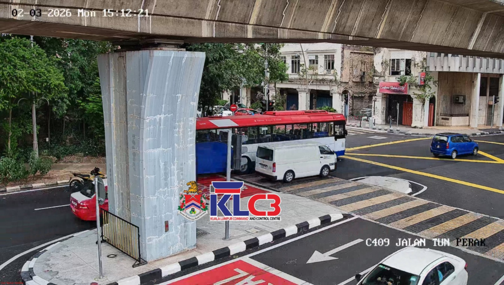 Sebuah bas rosak di Jalan Tun Perak ke Jalan Pudu. Lorong kiri terhalang. Polis Trafik di lokasi.