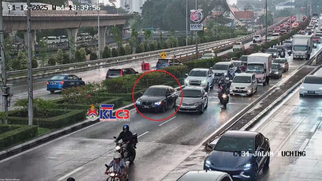 Terdapat sebuah kenderaan rosak dilokasi susur Turun menghala ke Gerbang Jalan Kuching, lorong kanan terhalang, aliran trafik perlahan dilokasi.