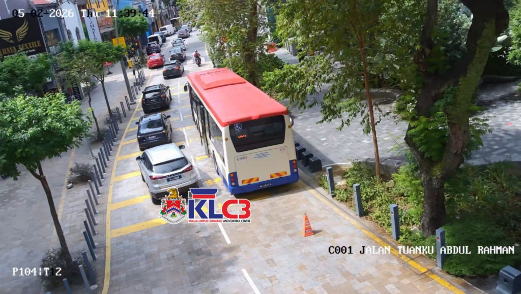 Sebuah bas rosak di Jalan Tuanku Abdul Rahman ke Jalan Tun Perak/Jalan Parlimen/ Jalan Raja. Lorong kanan terhalang