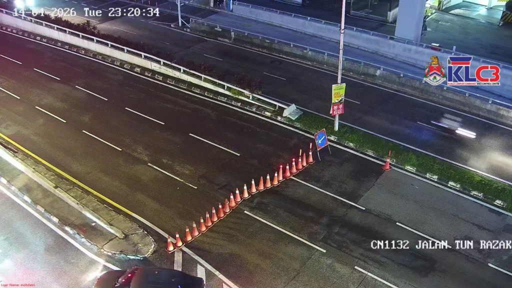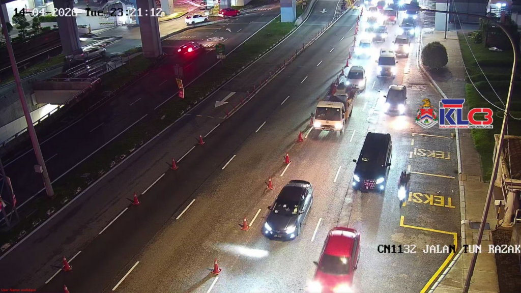 Jln Tun Razak: Kerja-kerja selenggara di terowong hadapan RHB arah ke Ampang Park. Terowong ditutup sementara, trafik perlahan.