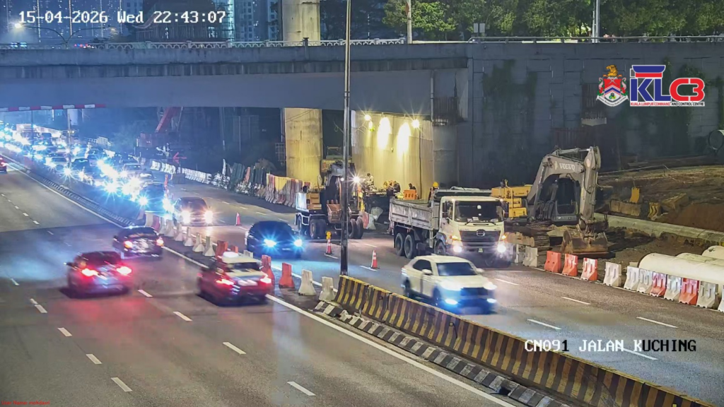Jln Kuching: Kerja-kerja selenggara berhampiran susur Jln Dutamas arah ke pusat bandar. 2 lorong kiri ditutup sementara, trafik perlahan.