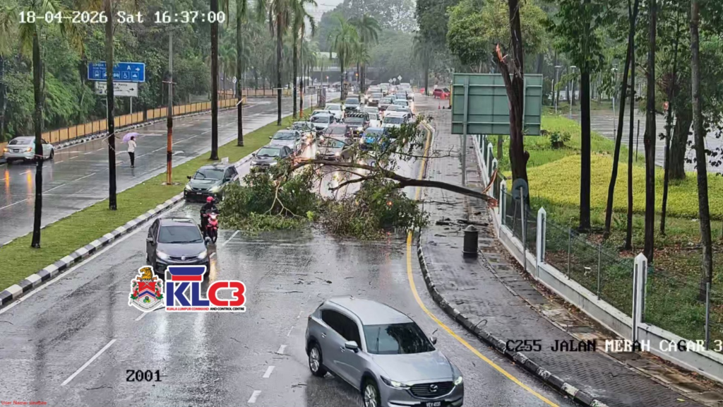 Pokok tumbang di Jalan Merah Cagar ke TPM / Sri Petaling. 2 lorong kiri terhalang. Aliran trafik sesak di lokasi. Mohon bantuan team UNIT Kecemasan DBKL.