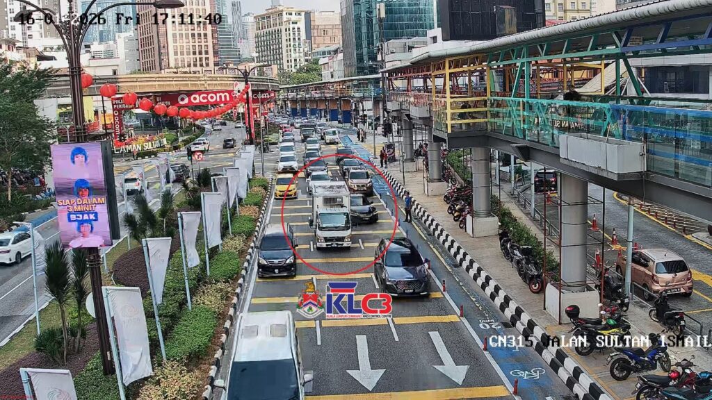 Sebuah lori rosak di Jalan Kuching sebelum ke susur Jalan Sultan Ismail ke arah Bulatan Dato Onn. Satu lorong tengah terhalang. Aliran trafik perlahan. Anggota Polis Trafik di lokasi. Skuad Ranger 01 menghala ke lokasi.