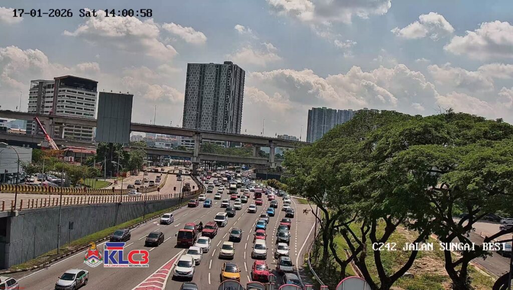 Aliran trafik perlahan di Lebuhraya Timur Barat (Salak Selatan) ke arah Seputeh.