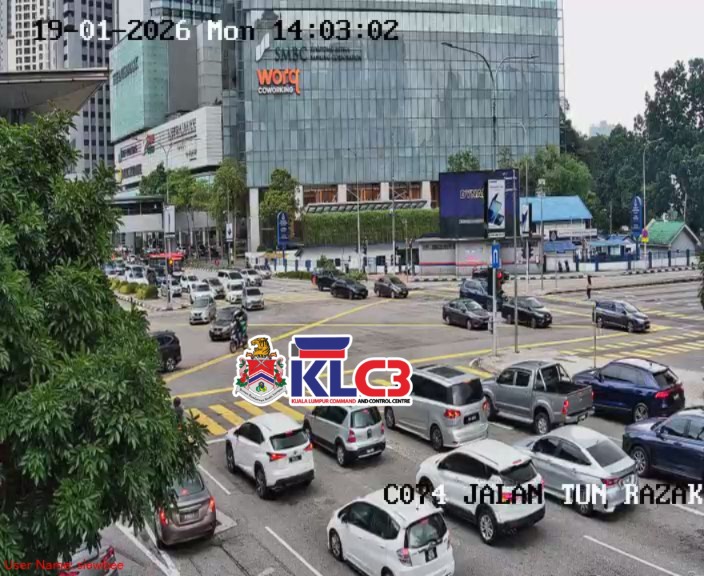 Jalan Tun Perak: Terdapat kerja penyelengaraan landskap dilokasi menghala ke Bulatan Dato Onn, lorong kanan ditutup sementara, aliran trafik perlahan dilokasi