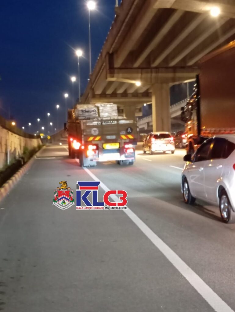 Terdapat sebuah lori Treler rosak dari arah Tol Sungai Besi menghala ke Pusat Bandar, lorong kanan terhalang, aliran trafik perlahan dilokasi.