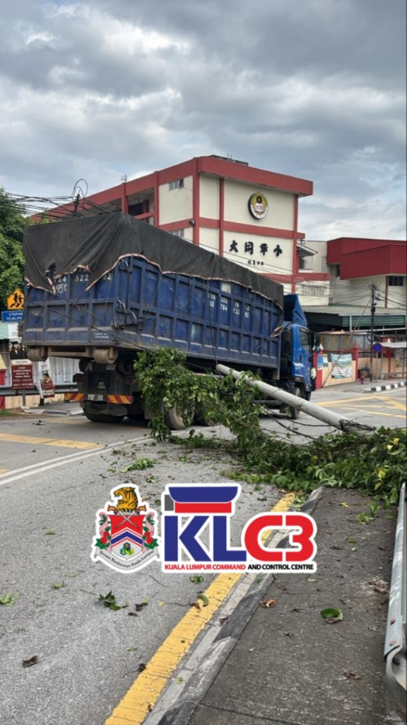 Sebuah treler melanggar tiang elektrik di Besraya berhampiran SJK (C) Tai Thung. Polis Trafik dan Renjer KLC3 01 di lokasi. Peronda Besraya menghala ke lokasi.