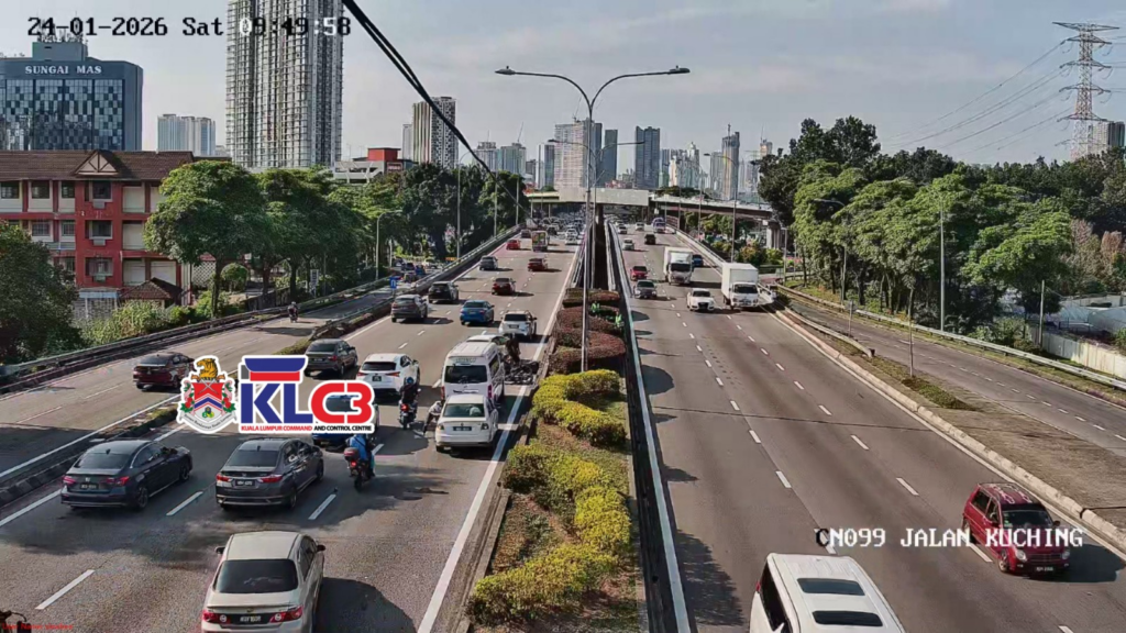 Terdapat sebuah kenderaan rosak dilokasi dari arah Jalan Kuching menghala ke Bulatan Dato Onn, lorong kiri terhalang, aliran trafik perlahan dilokasi.