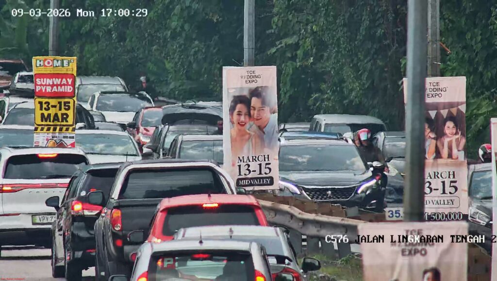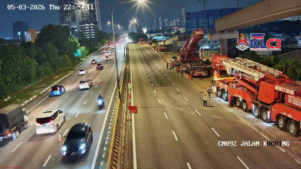 Terdapat kerja penyelenggaraan di lokasi atas Bulatan Dato Onn menghala ke Jalan Kuching, lorong kanan ditutup sementara, aliran trafik perlahan menghala ke lokasi