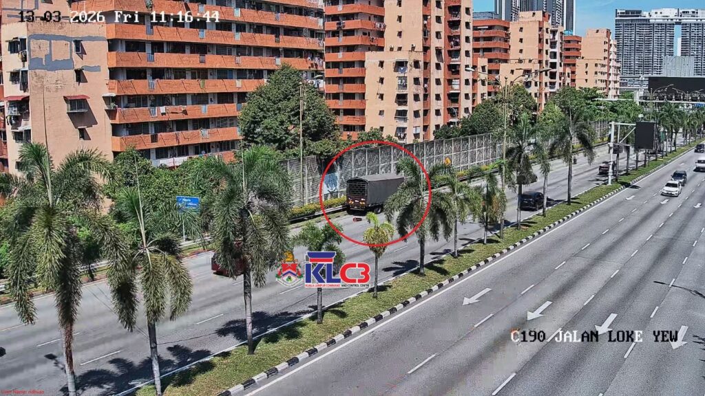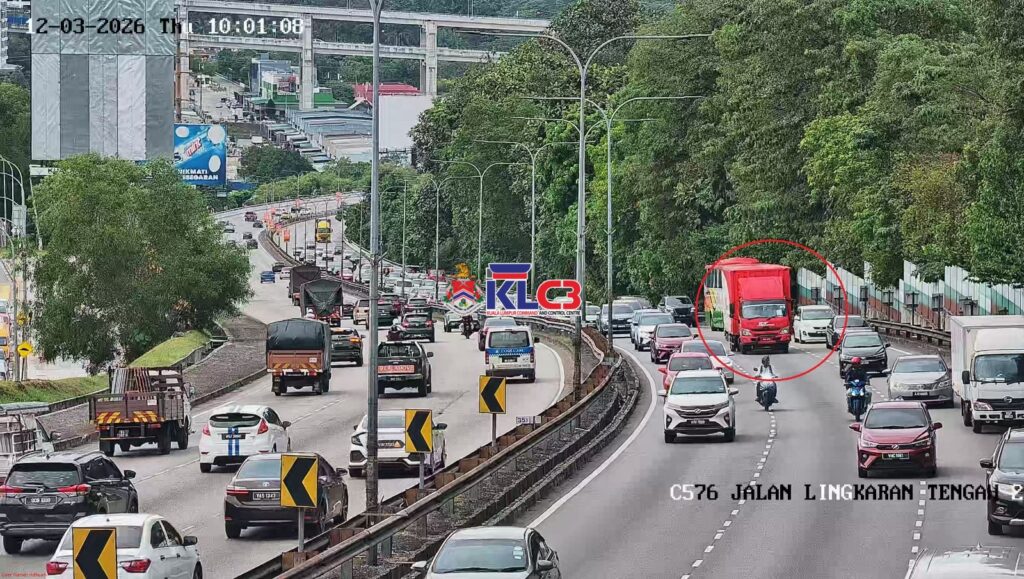 Sebuah lori rosak di lokasi selepas Bulatan Kepong menghala ke Bulatan Segambut, lorong kiri terhalang, aliran trafik perlahan di lokasi
