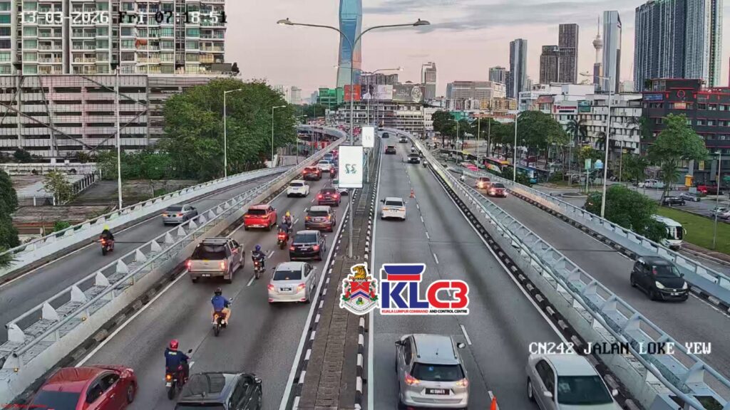 Sebuah kenderaan rosak di lokasi dari arah Jalan Loke Yew menghala ke Maharajalela, lorong tengah terhalang, aliran trafik perlahan menghala ke lokasi.