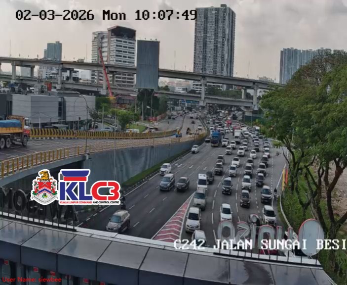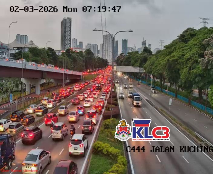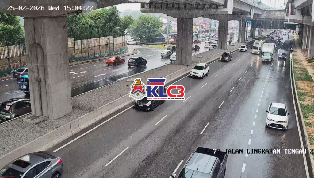 Aliran trafik tinggi, cuaca hujan gerimis sekitar Pusat Bandar. Berhati-hati ketika memandu.