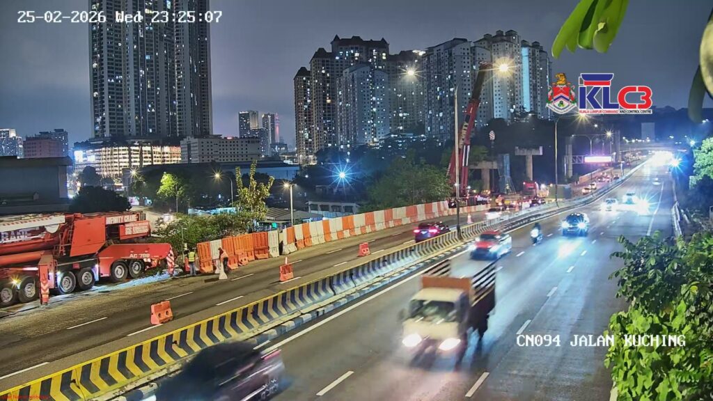 Terdapat kerja pembersihan di lokasi Pintu Gerbang Jalan Kuching menghala ke WTC, lorong kiri ditutup sementara.