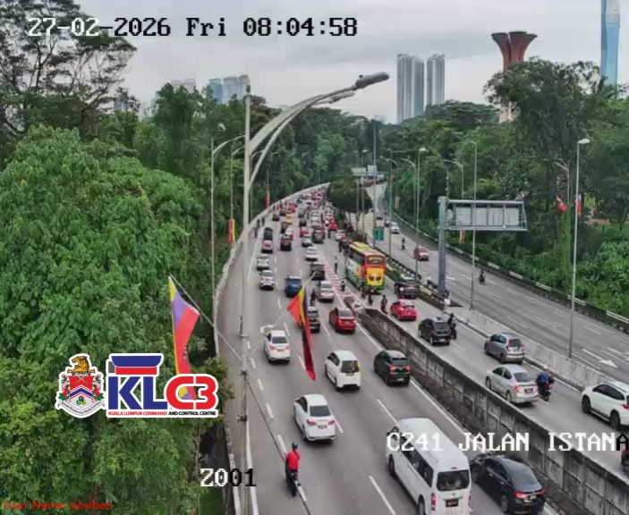 Aliran trafik lancar dan terkawal, cuaca baik sekitar Pusat Bandar.