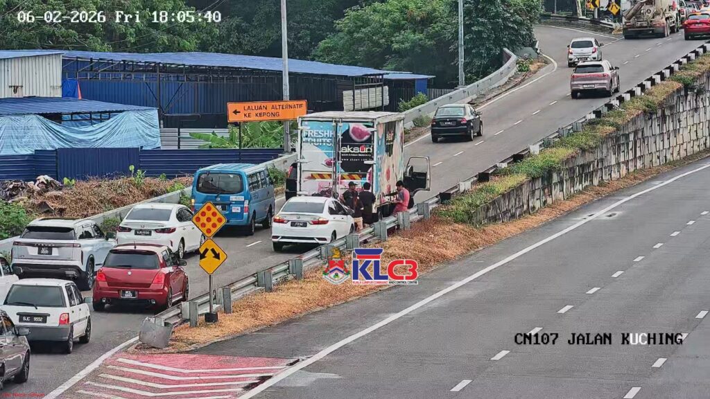 Aliran trafik perlahan dari arah Bulatan Batu Caves menghala ke Pusat Bandar di sebabkan terdapat kerja penyelengaraan dilokasi sebelum Bulatan Kepong, lorong kiri ditutup sementara