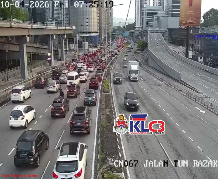 Aliran trafik terkawal, cuaca baik sekitar Pusat Bandar