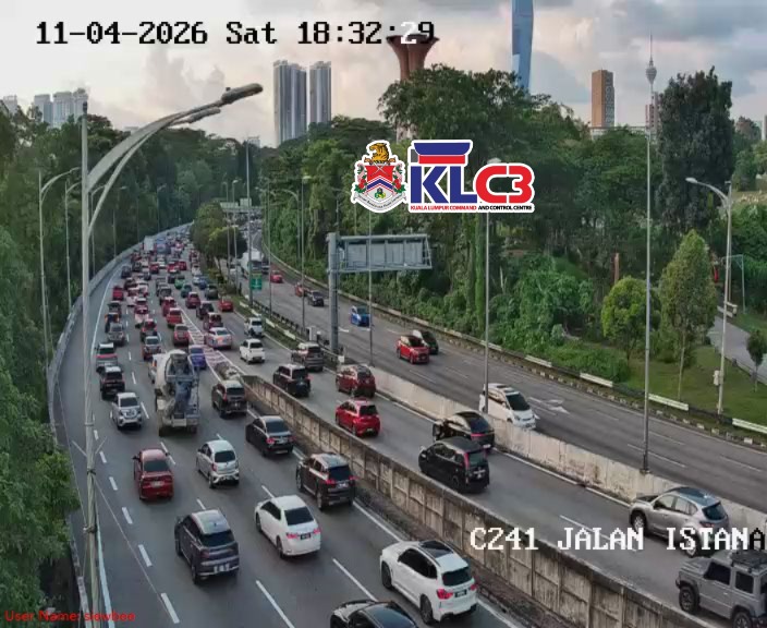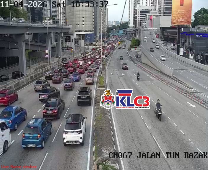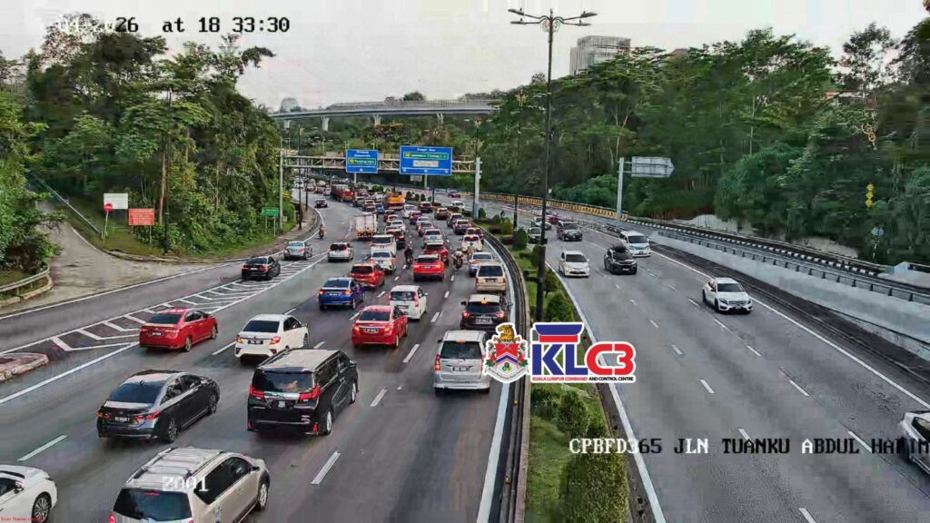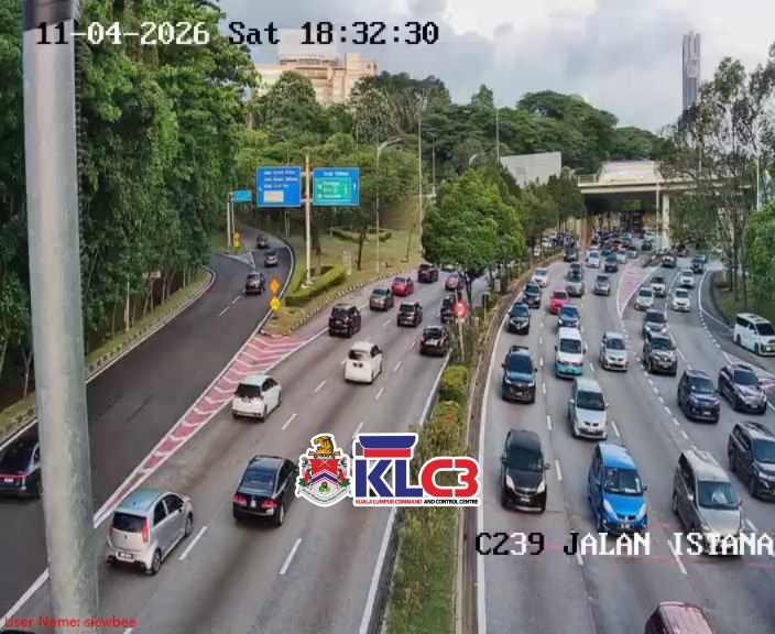 Aliran trafik tinggi sekitar Pusat Bandar, cuaca baik. Berhati-hati ketika memandu, awas jarak selamat antara kenderaan