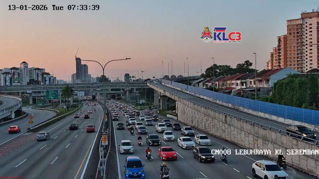 Aliran trafik tinggi di Lebuhraya KL-Seremban selepas Tol Sungai Besi ke arah pusat bandar