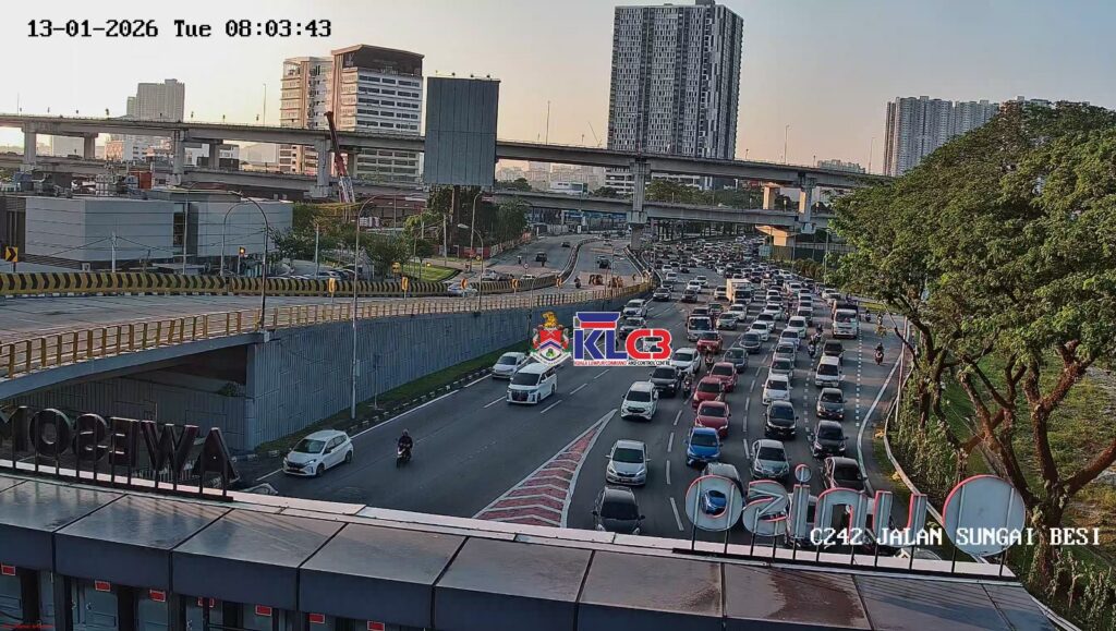 Aliran trafik tinggi di Jalan Sungai Besi ke susur Jalan Istana/Damansara.
