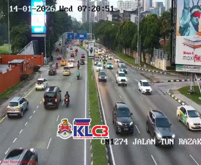 Aliran trafik tinggi, cuaca baik sekitar Pusat Bandar.