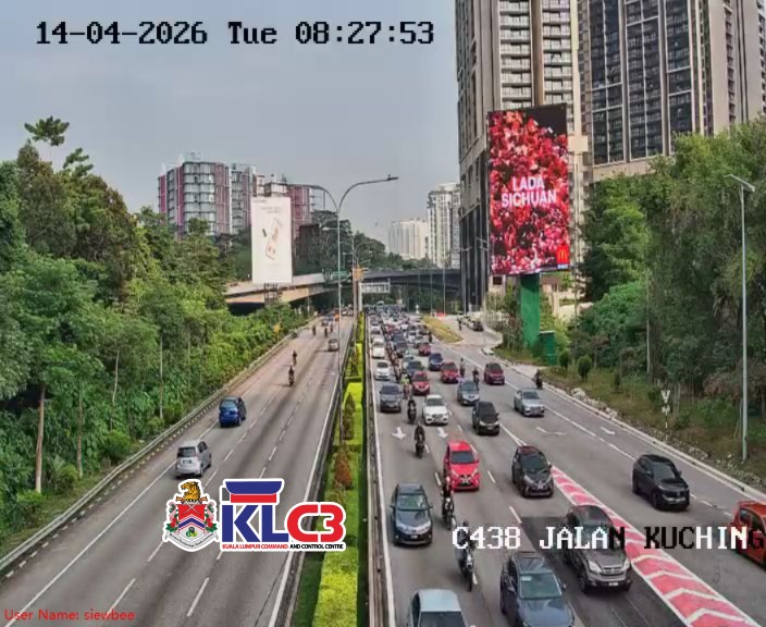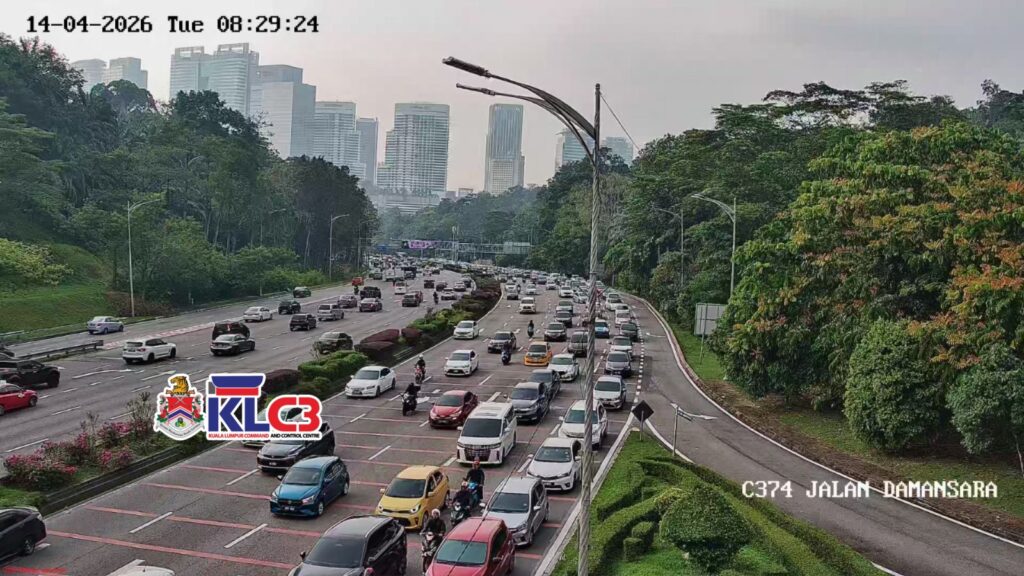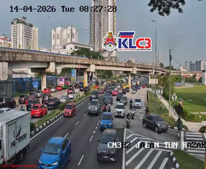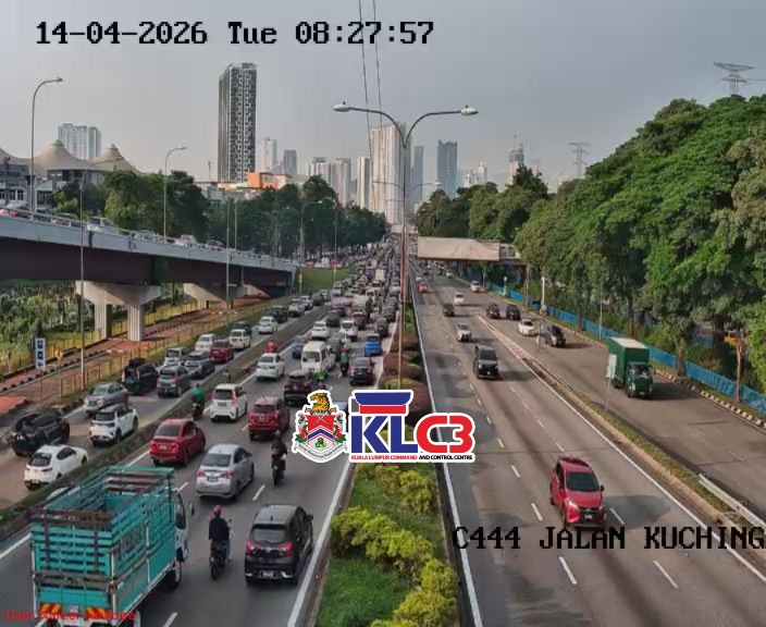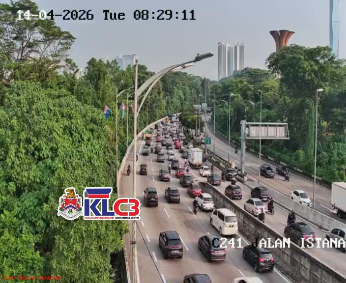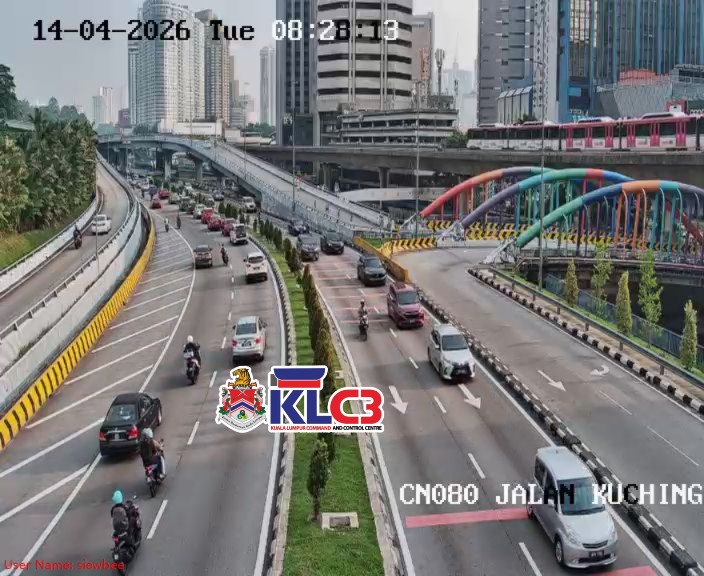 Aliran trafik tinggi, cuaca mendung sekitar Pusat Bandar