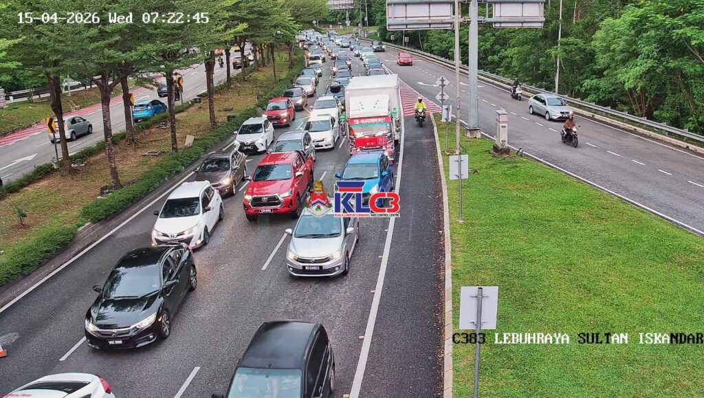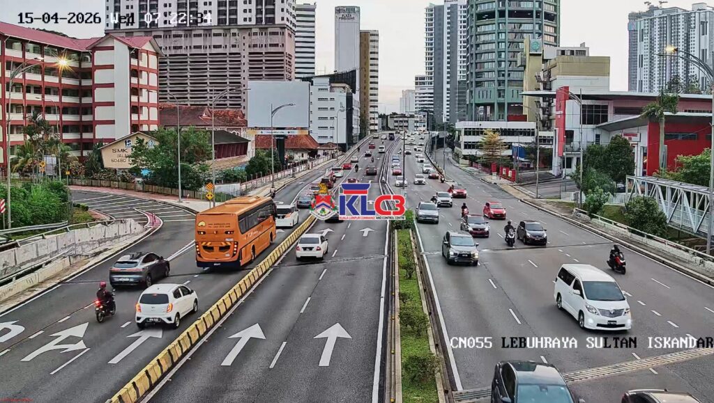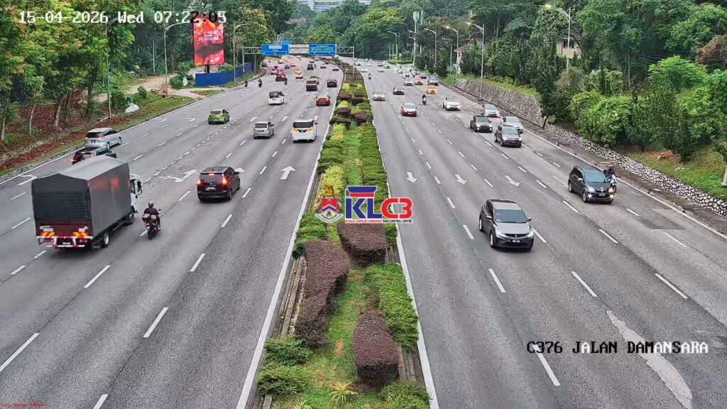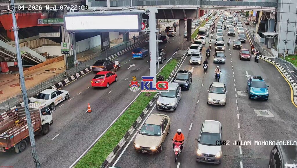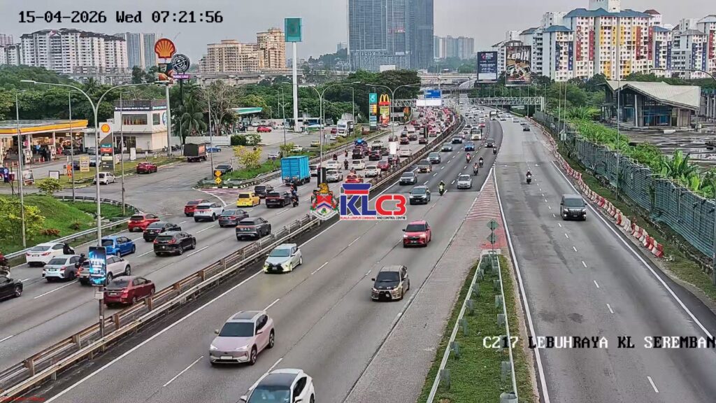 Aliran trafik tinggi menghala masuk ke Pusat Bandar, Cuaca mendung dan terdapat beberapa lokasi hujan renyai, Hati-hati memandu di jalan raya