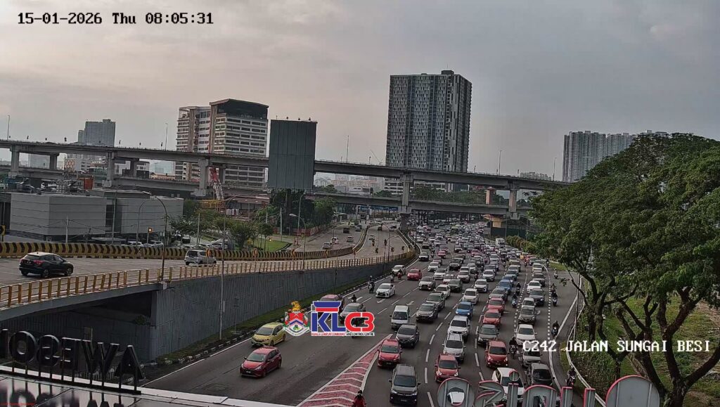 Aliran trafik tinggi di Jalan Sungai Besi ke susur Jalan Istana/Damansara.