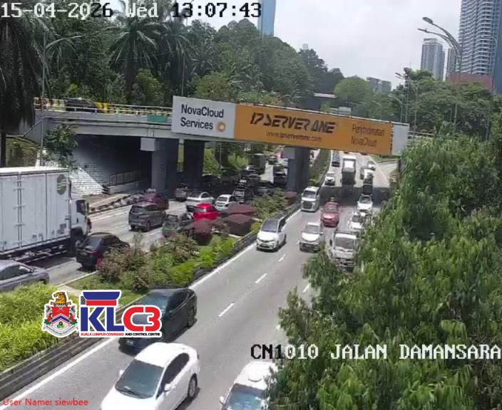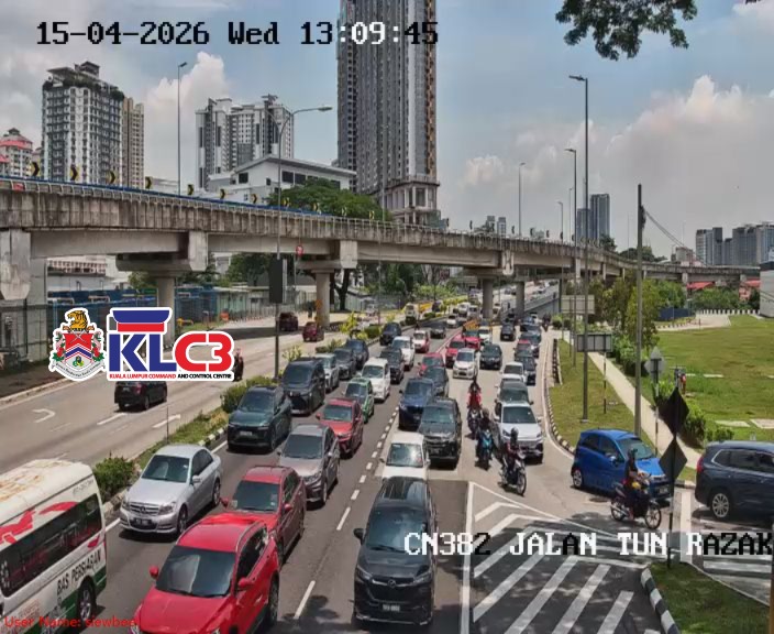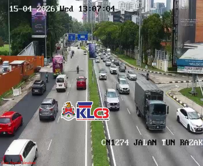 Aliran trafik perlahan, cuaca baik sekitar Pusat Bandar.