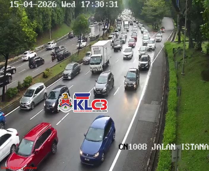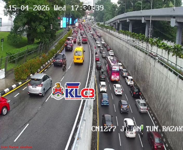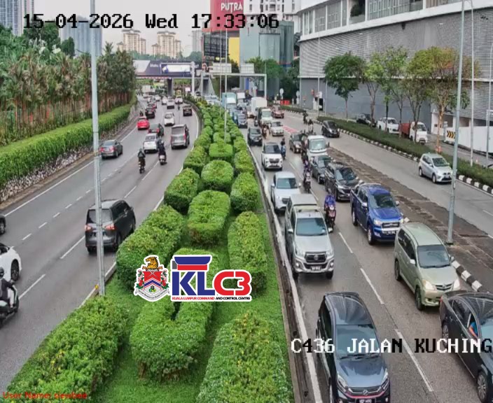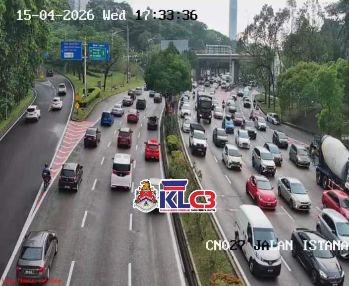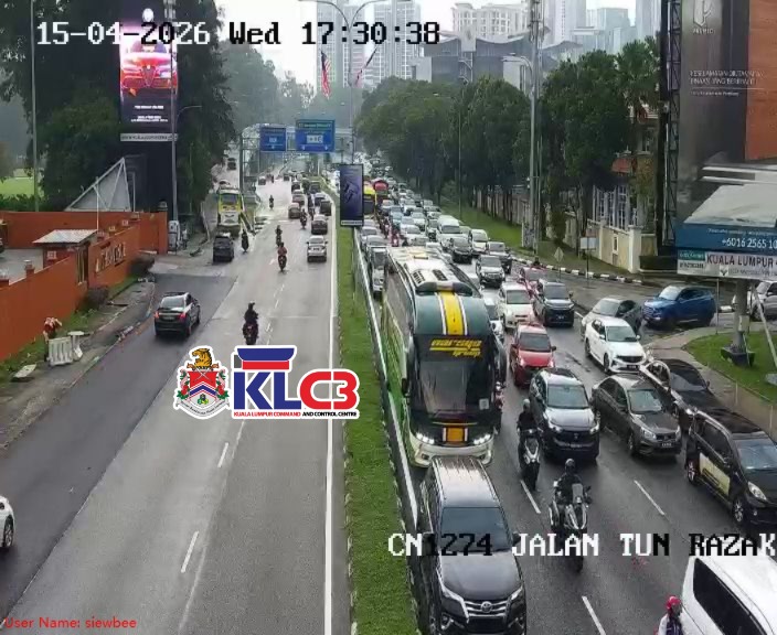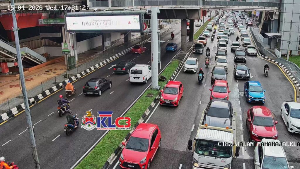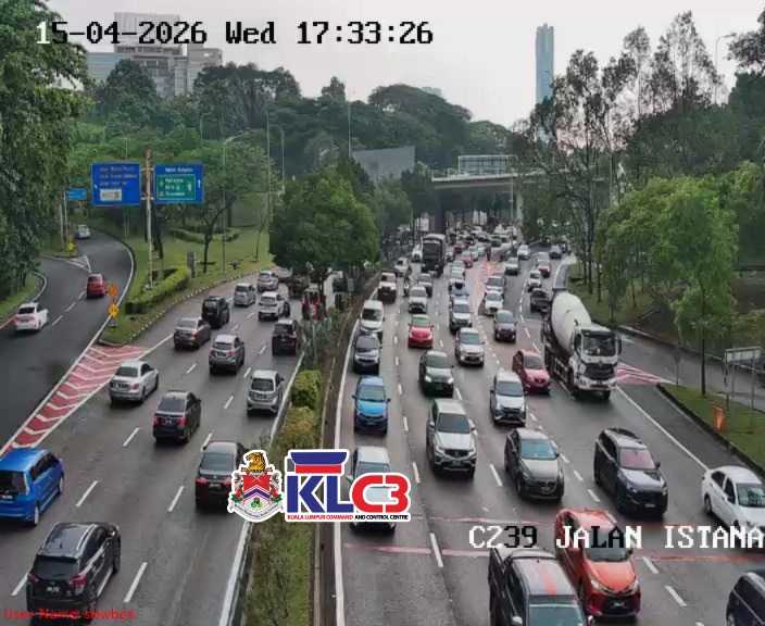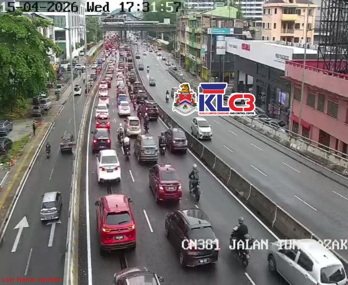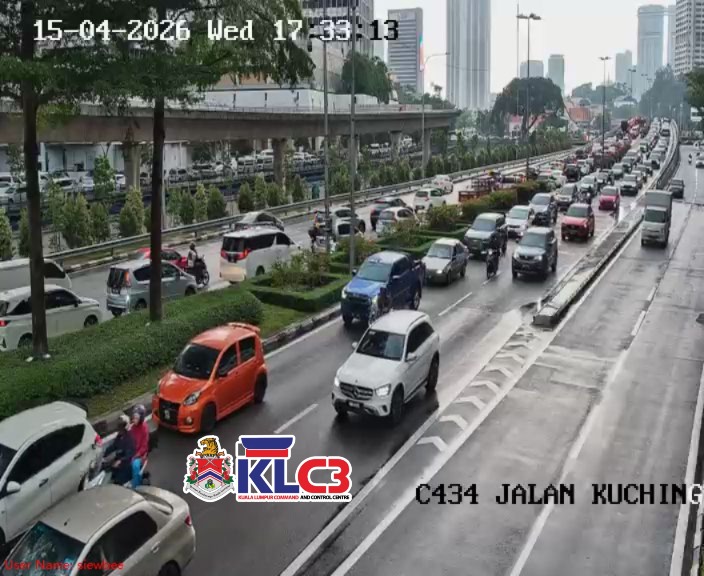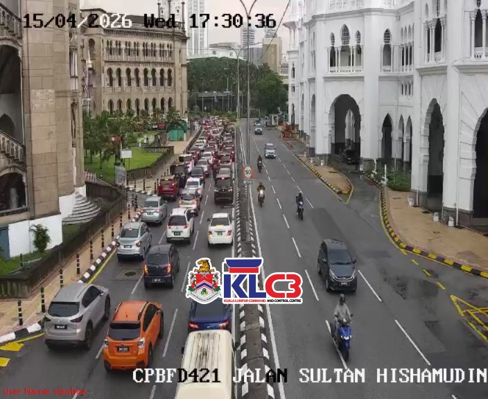 Aliran trafik tinggi, cuaca mendung dan hujan gerimis di beberapa lokasi sekitar Pusat Bandar.