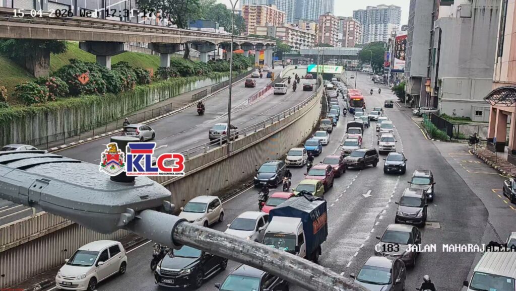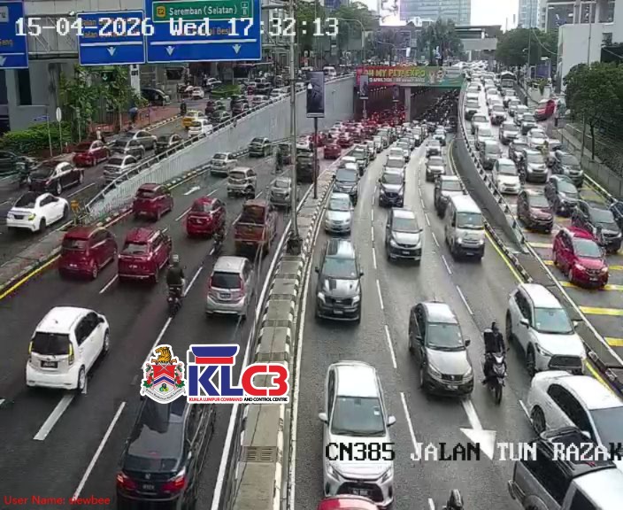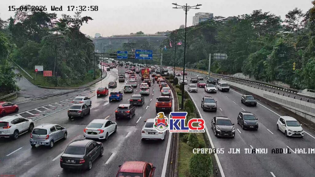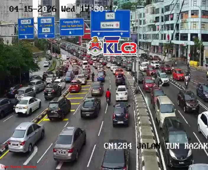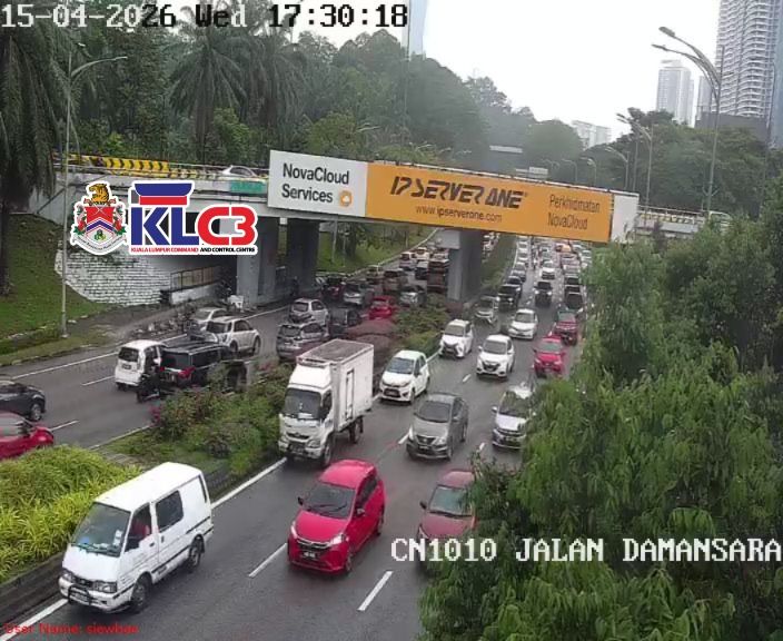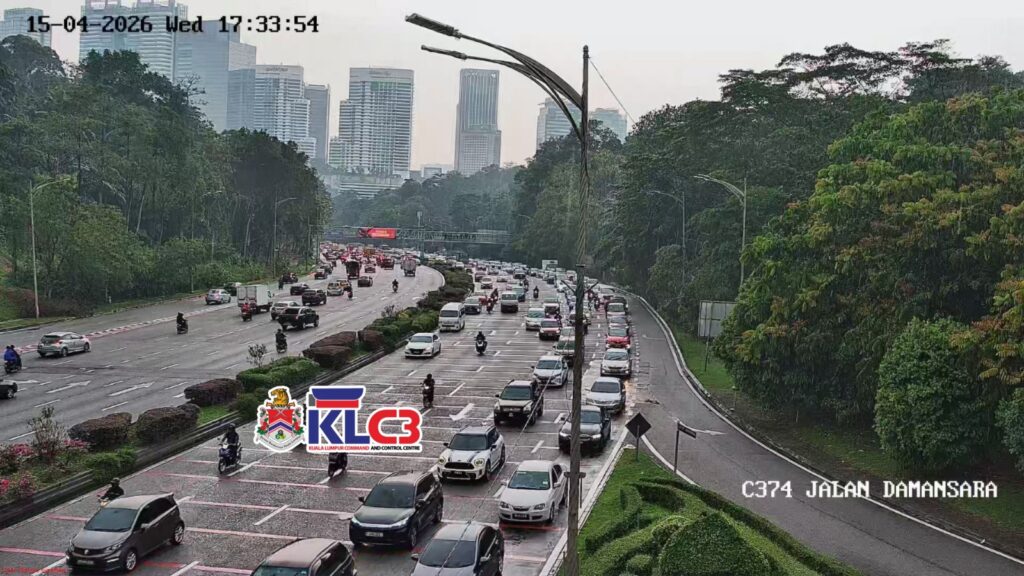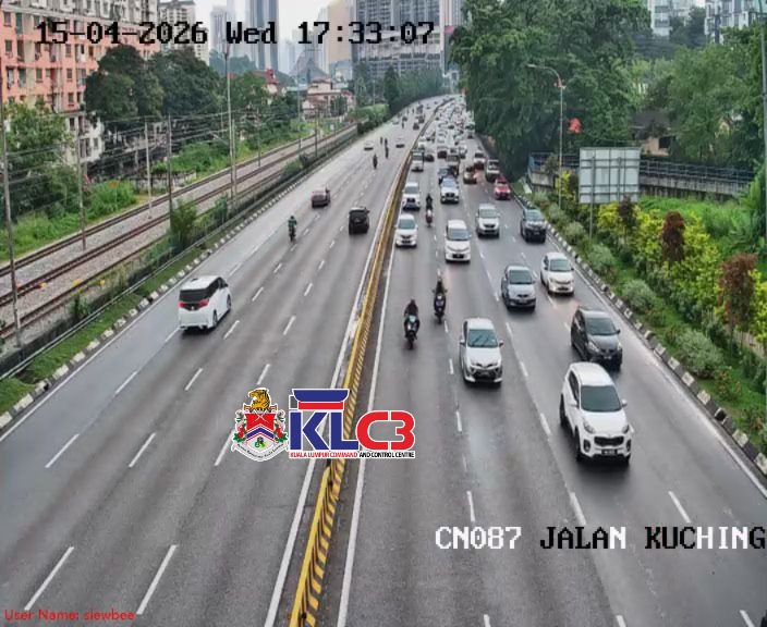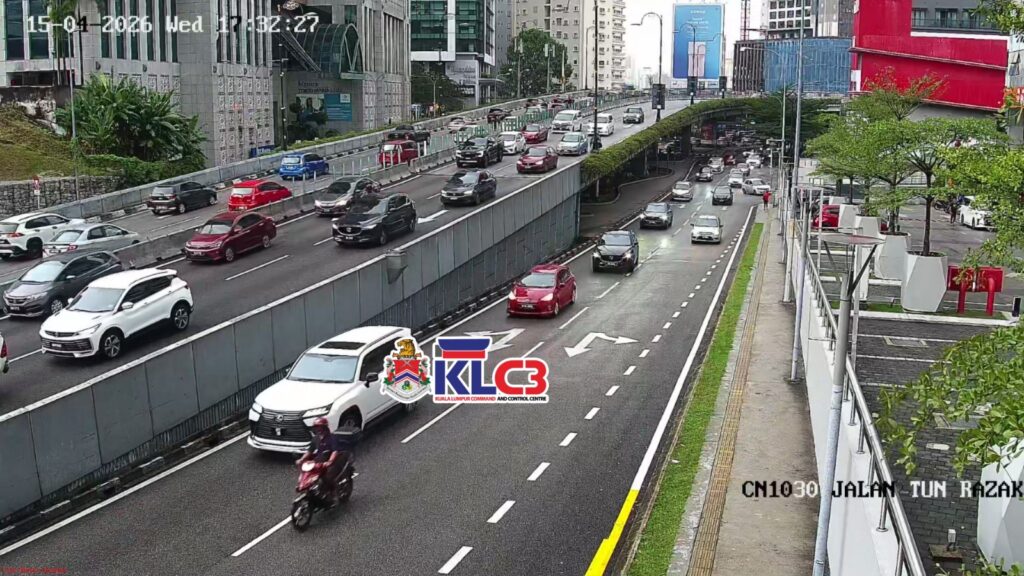 Aliran trafik tinggi, cuaca mendung dan hujan gerimis di beberapa lokasi sekitar Pusat Bandar.