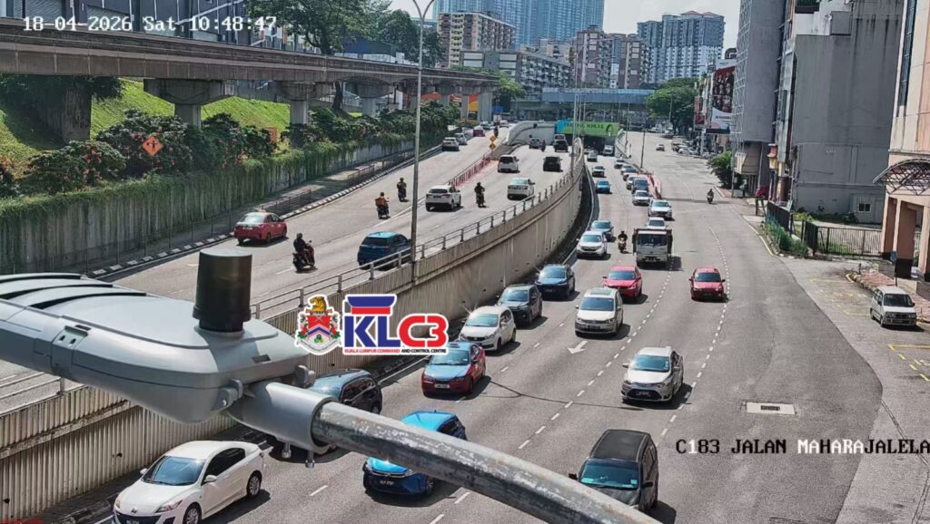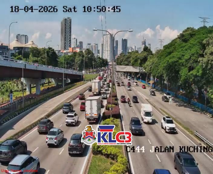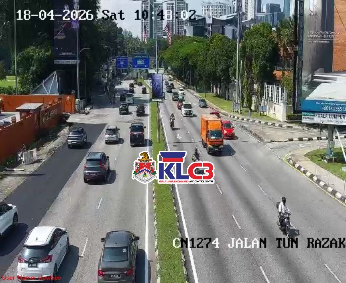Aliran trafik perlahan, cuaca baik sekitar Pusat Bandar.