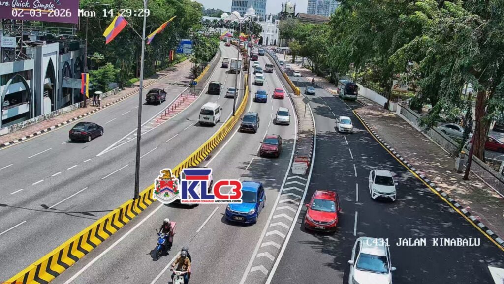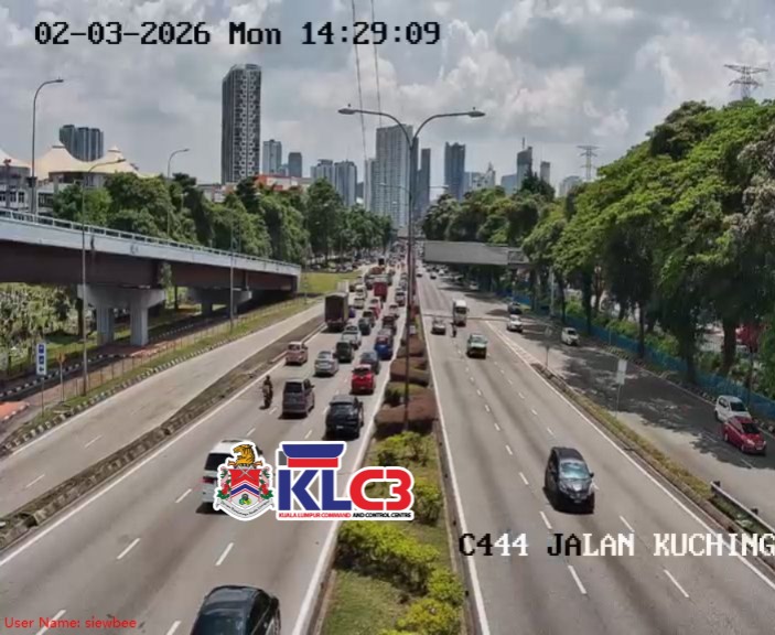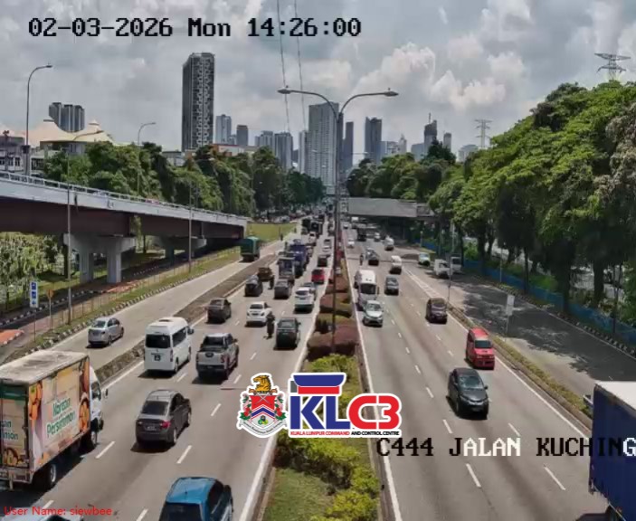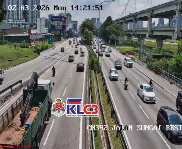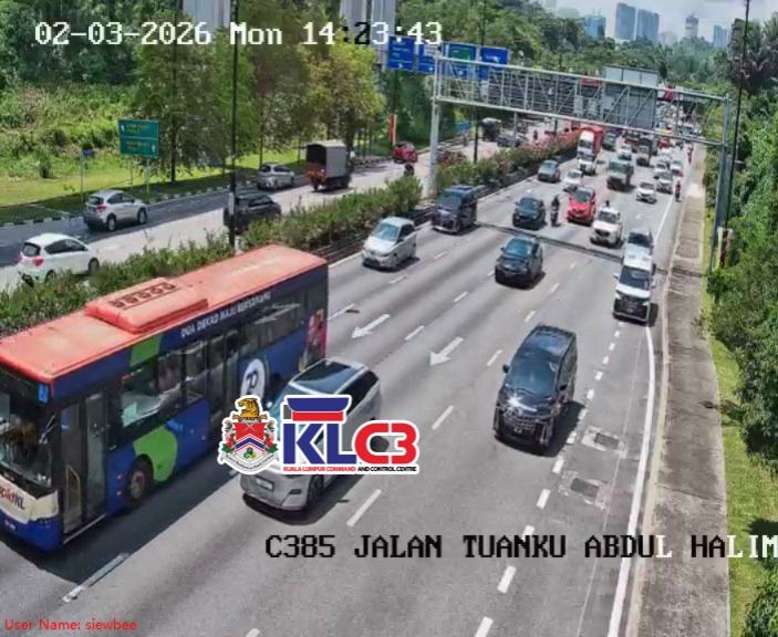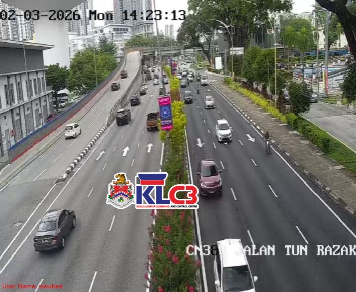 Aliran trafik perlahan, cuaca baik sekitar Pusat Bandar.