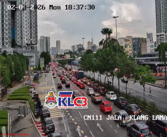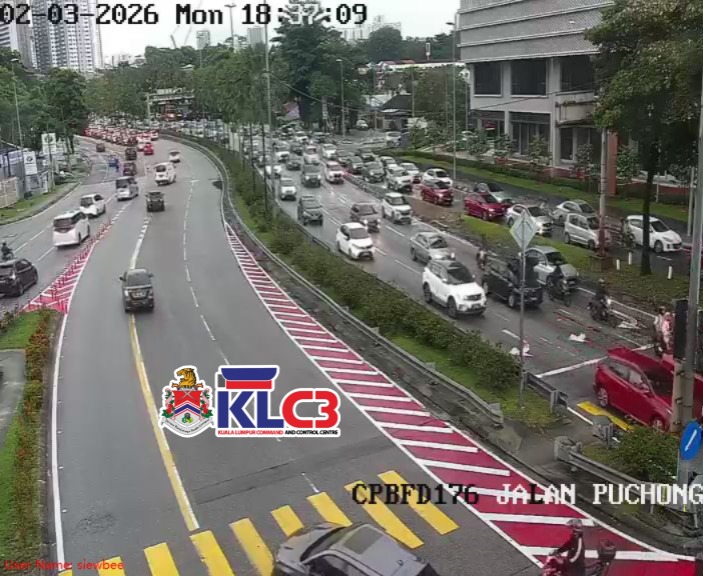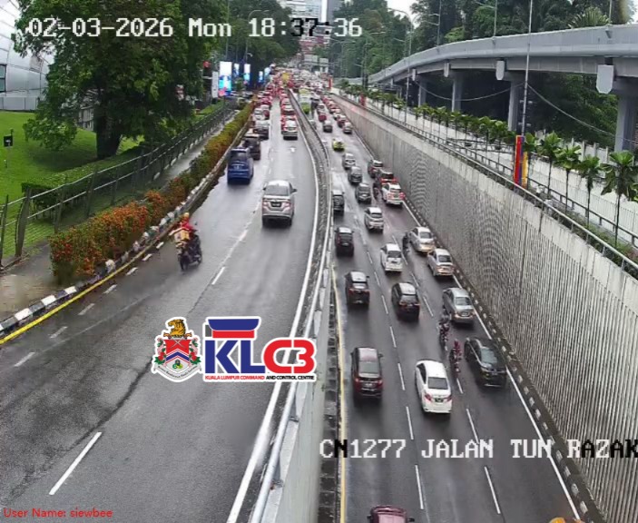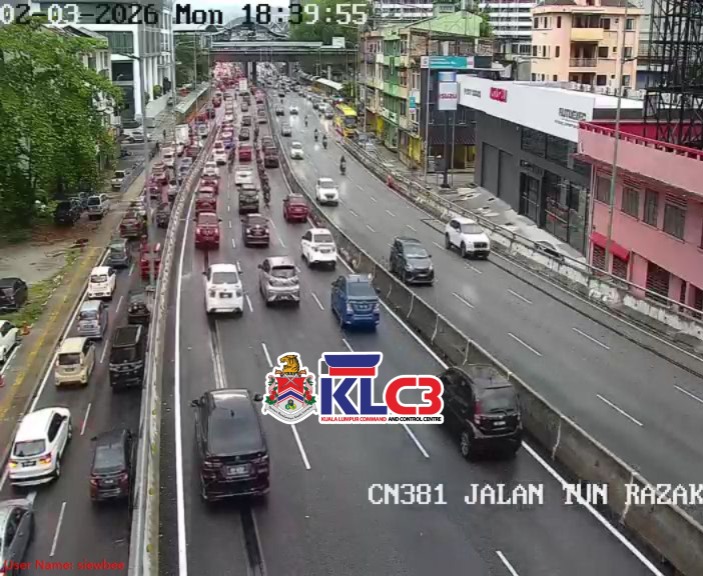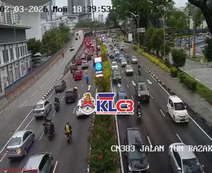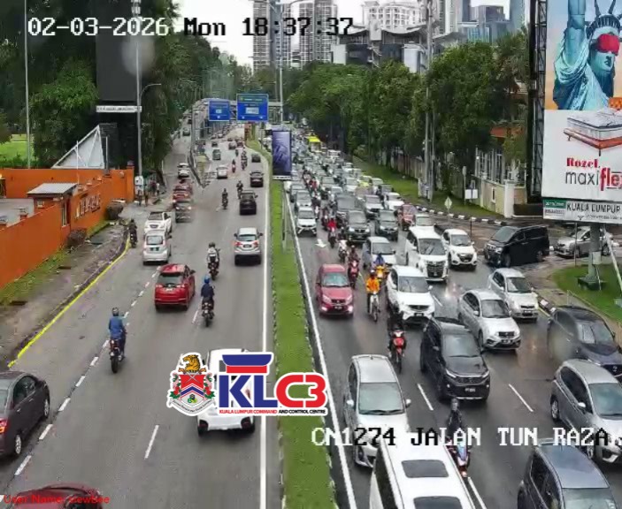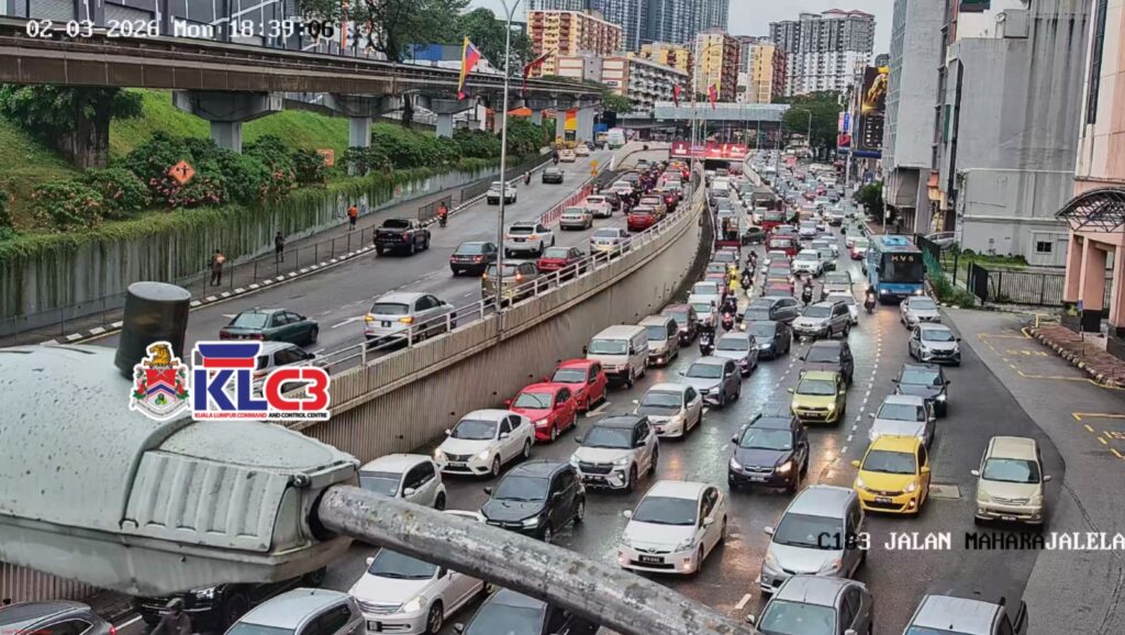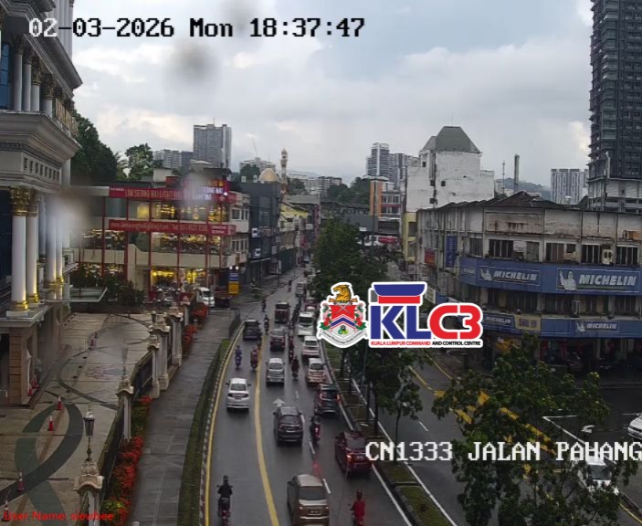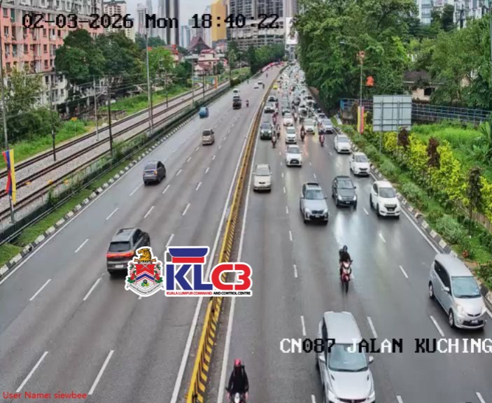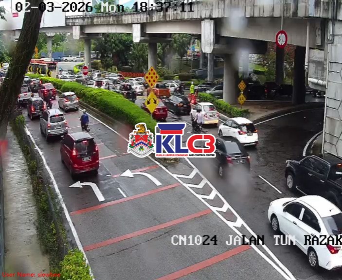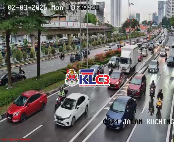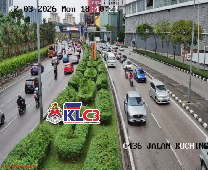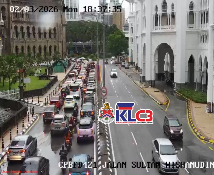 Aliran trafik tinggi, cuaca hujan gerimis sekitar Pusat Bandar. Berhati-hati ketika memandu.