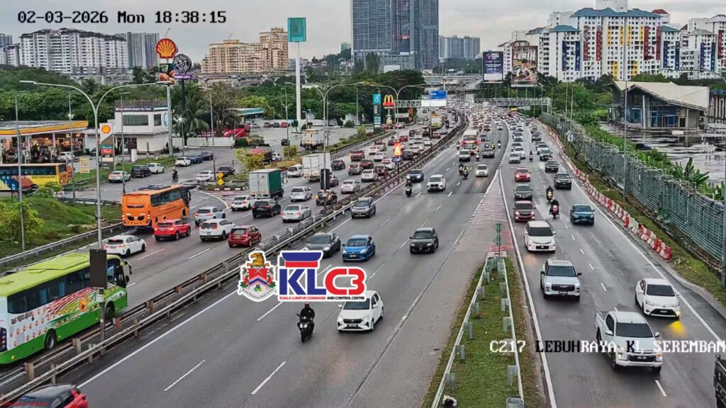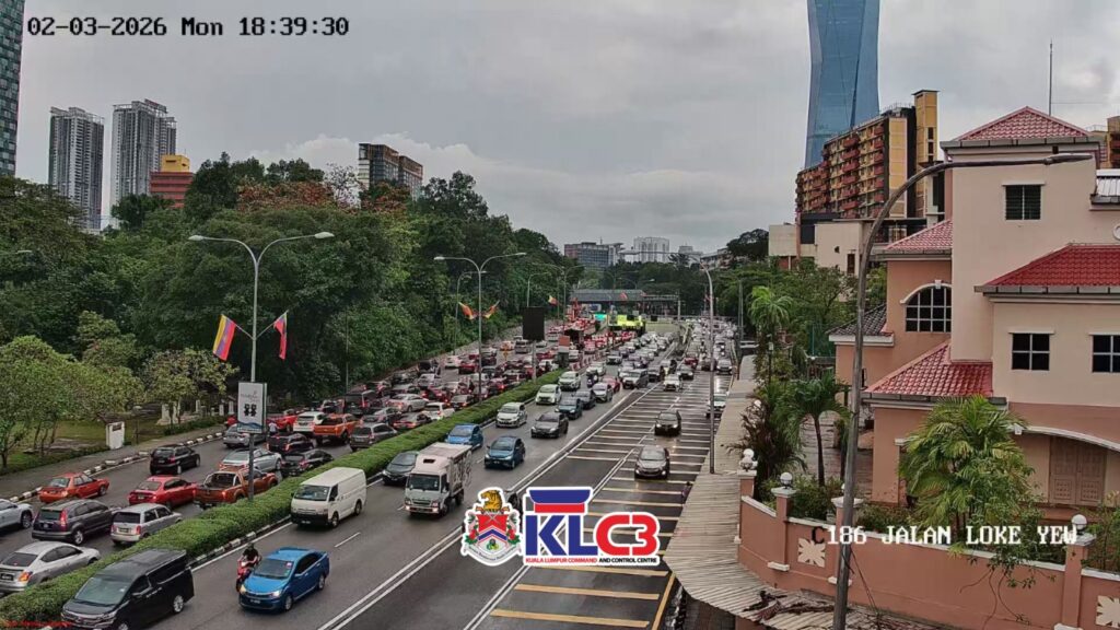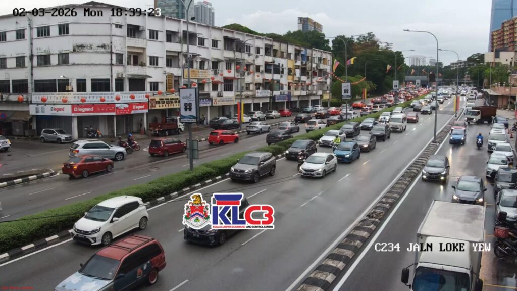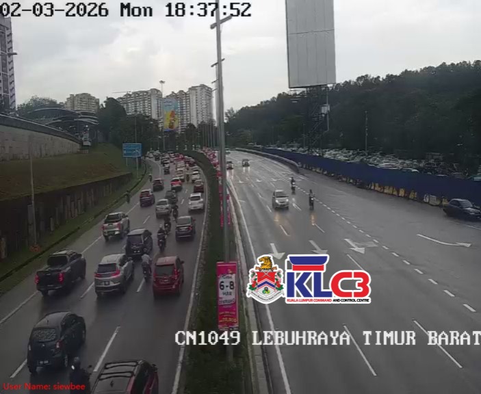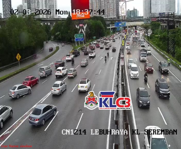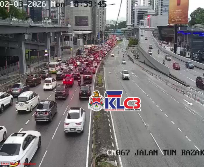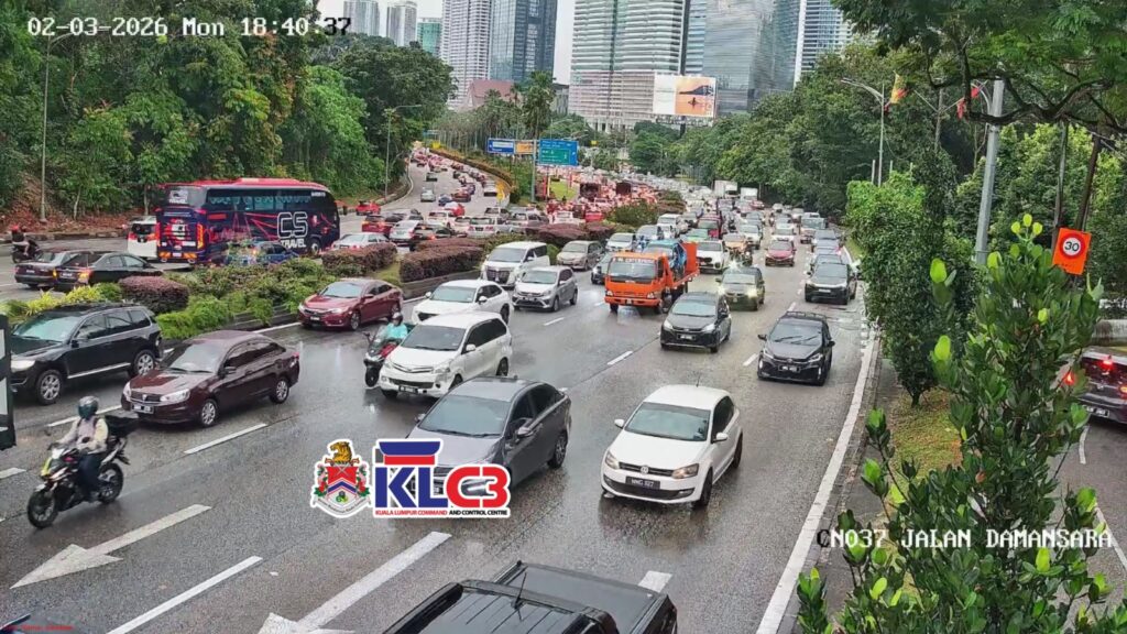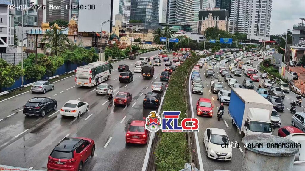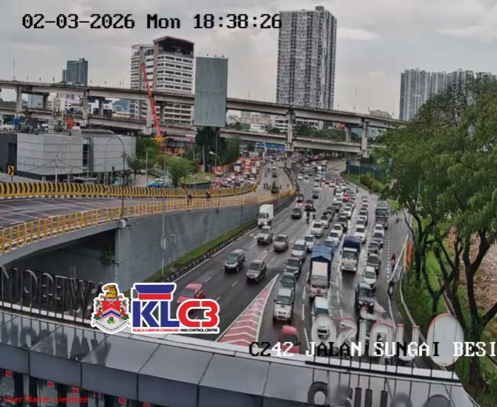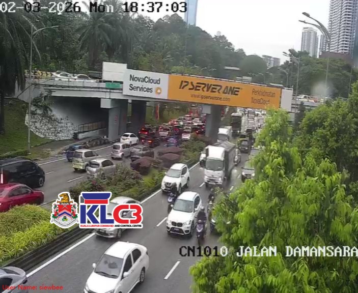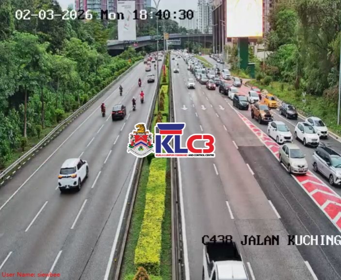 Aliran trafik tinggi, cuaca hujan gerimis sekitar Pusat Bandar. Berhati-hati ketika memandu.
