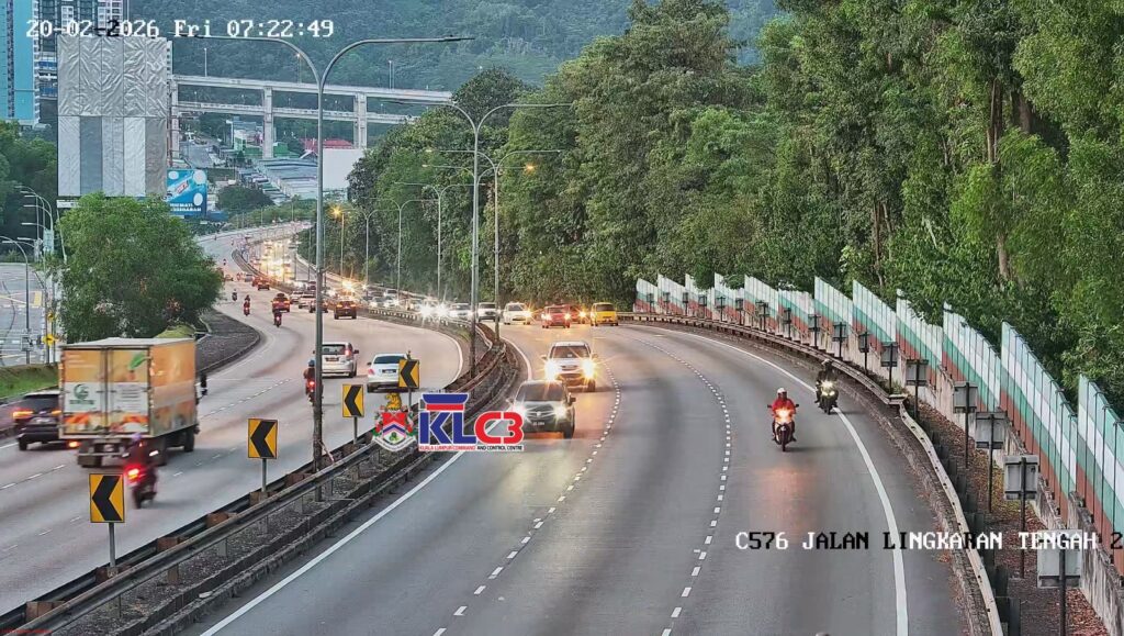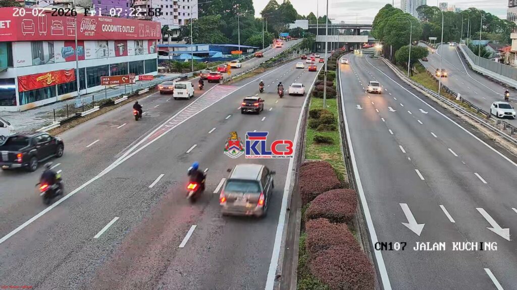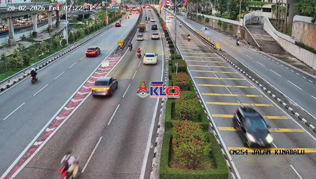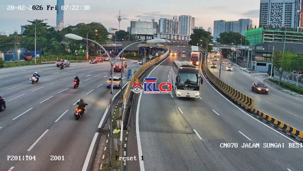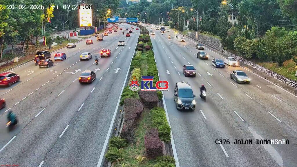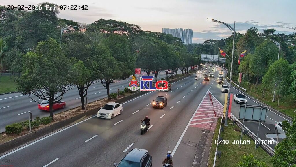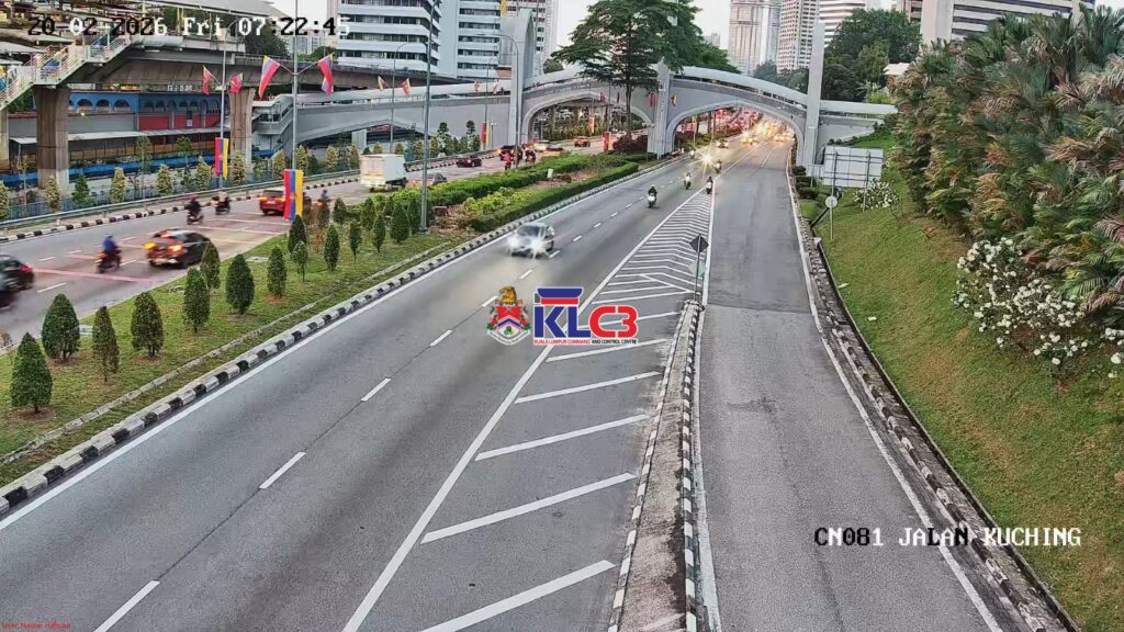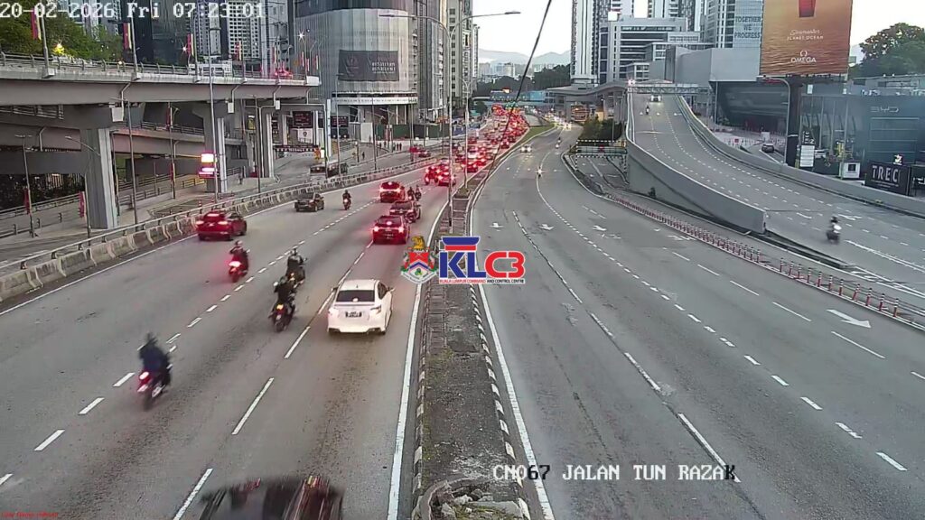 Aliran trafik mulai tinggi dan masih terkawal arah masuk ke Pusat Bandar, cuaca baik sekitar Pusat Bandar.