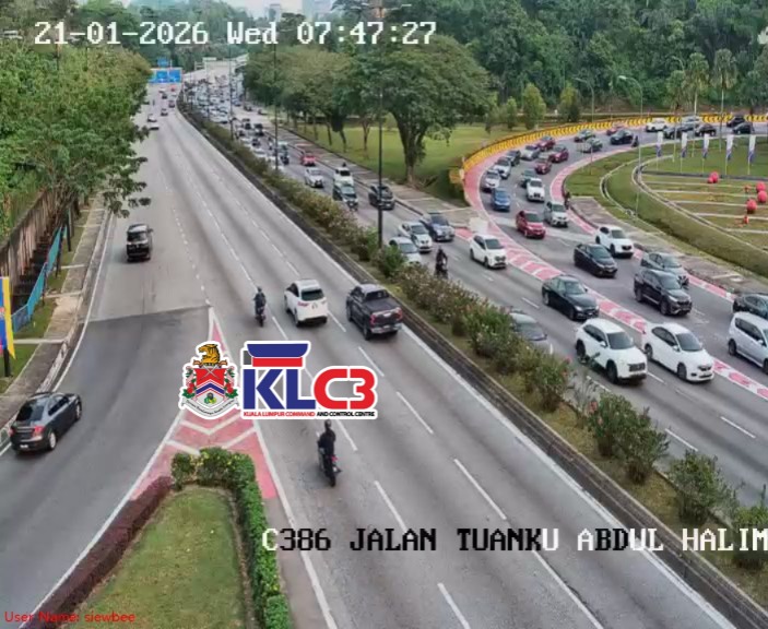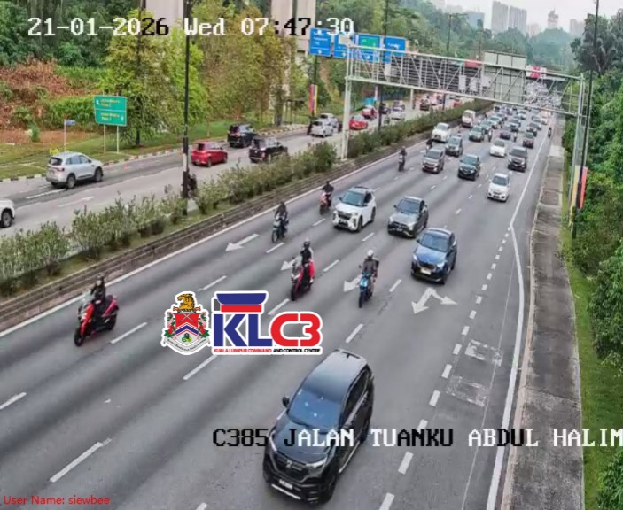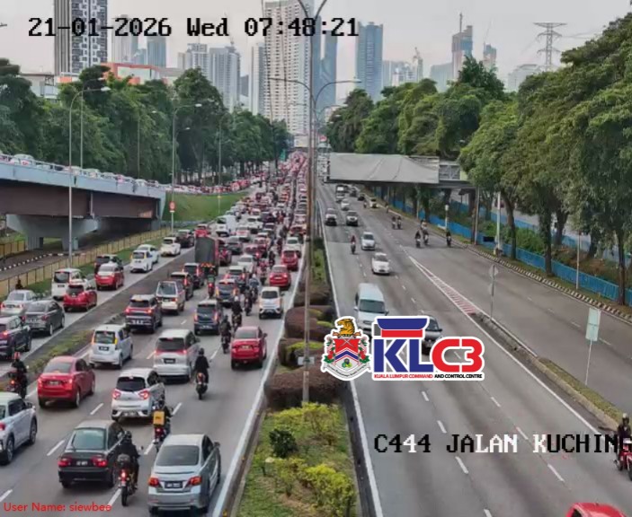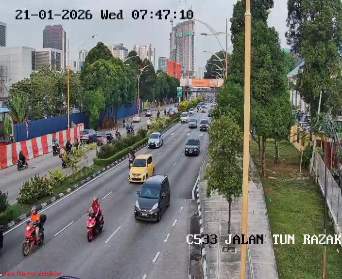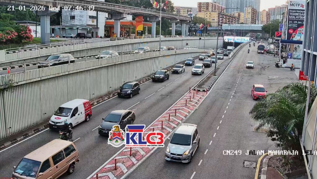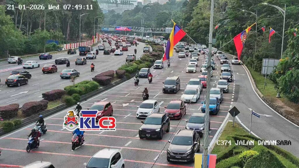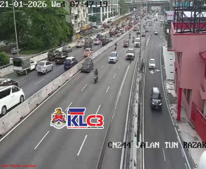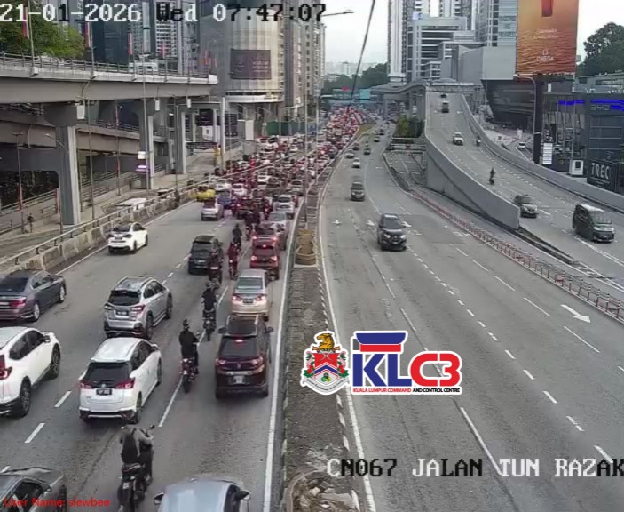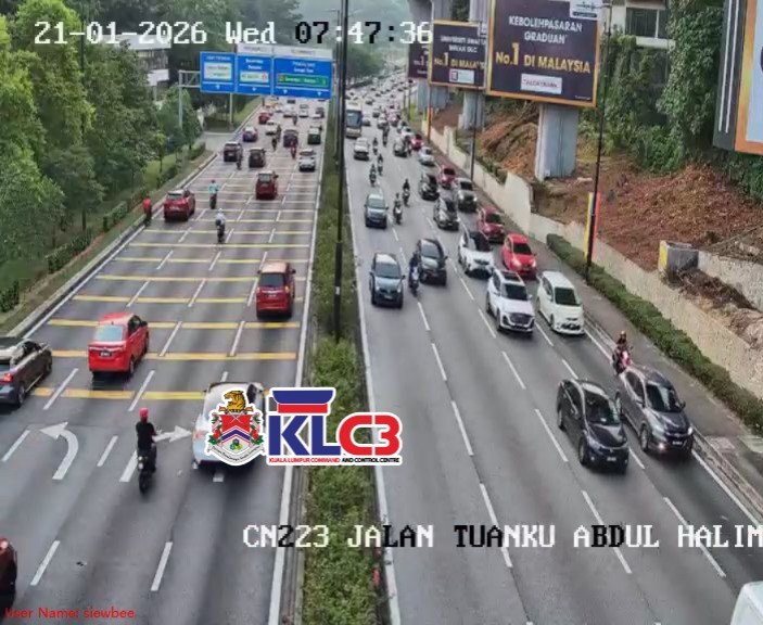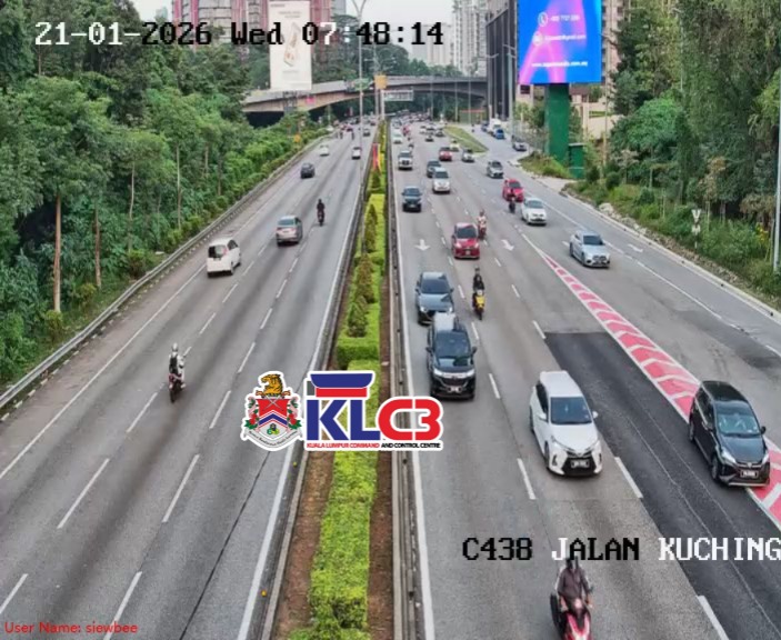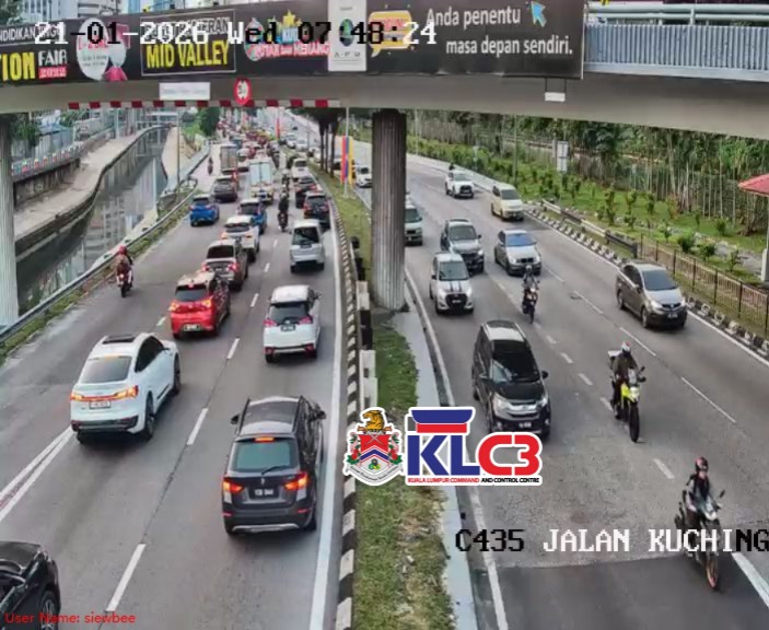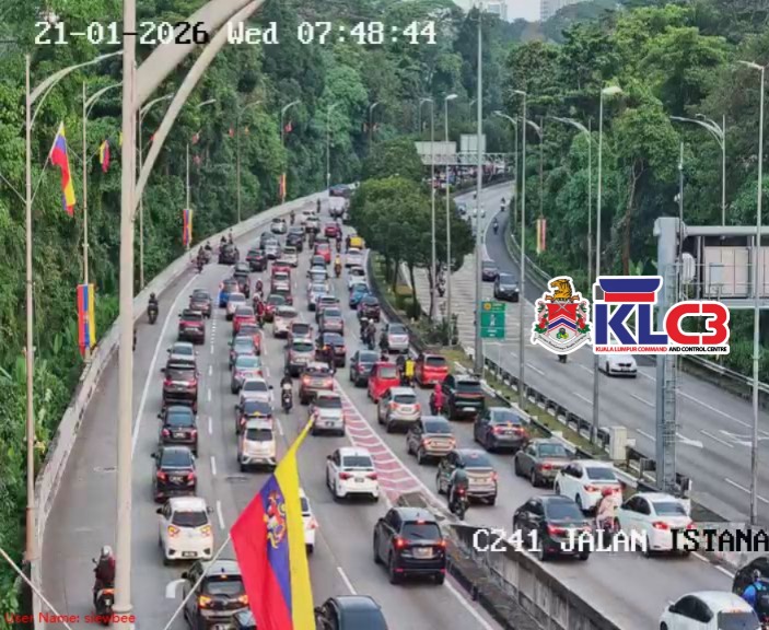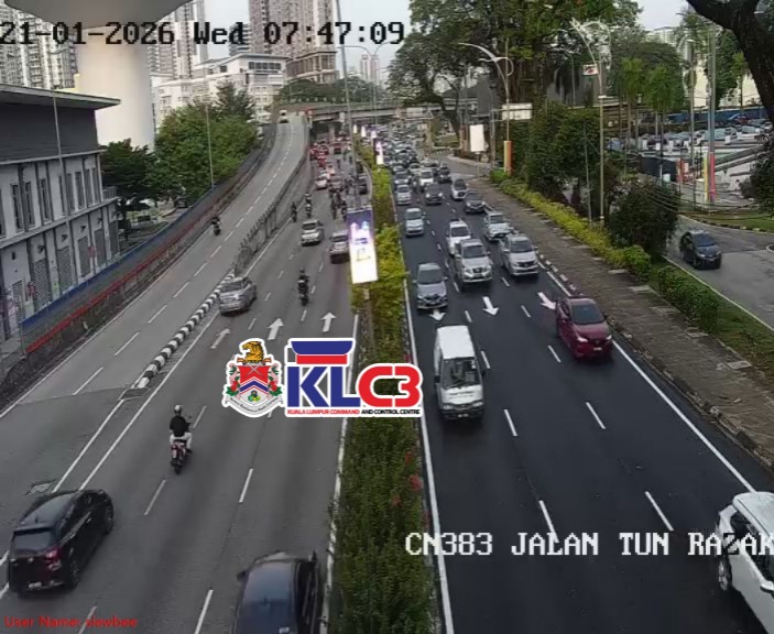 Aliran trafik tinggi, cuaca baik sekitar Pusat Bandar