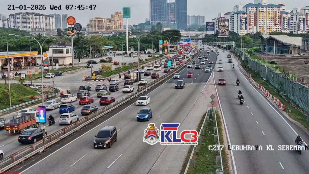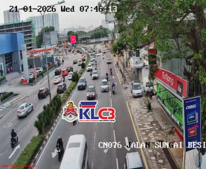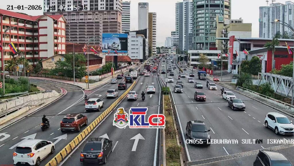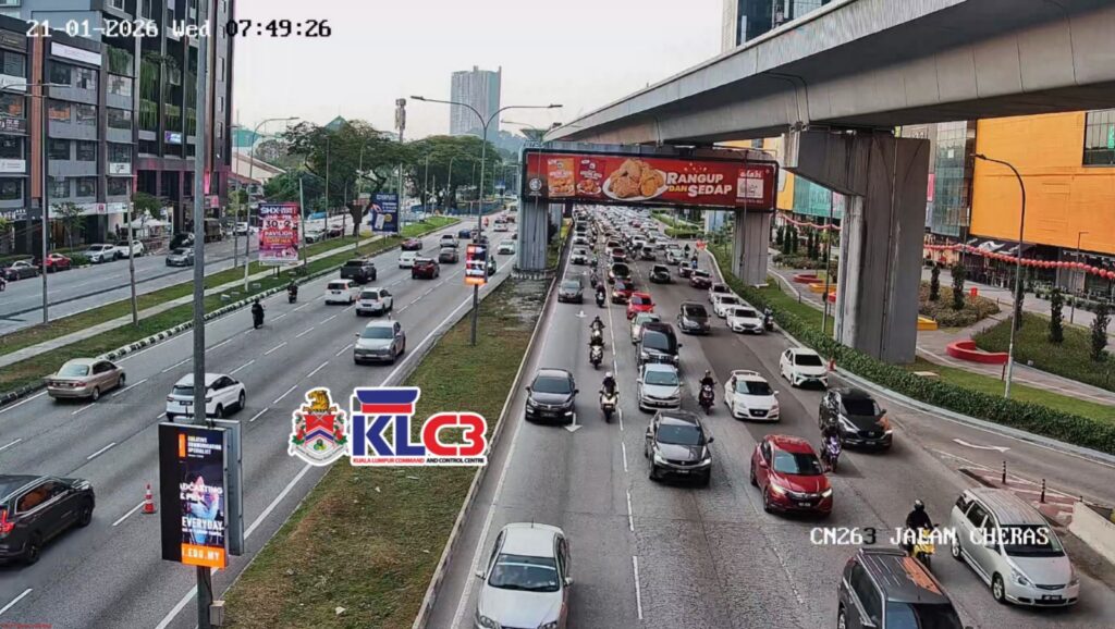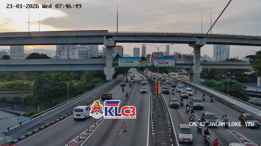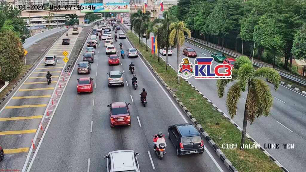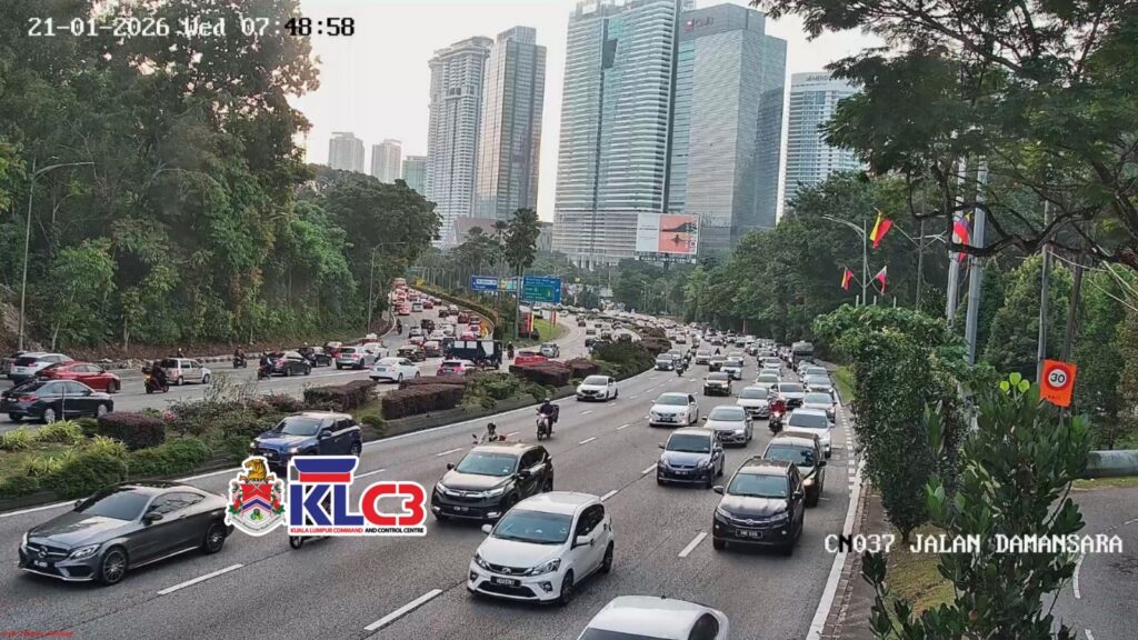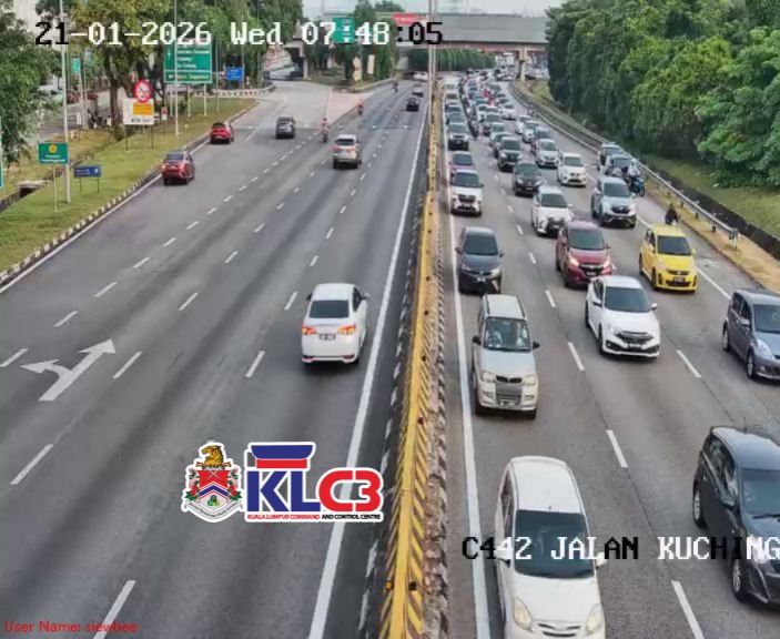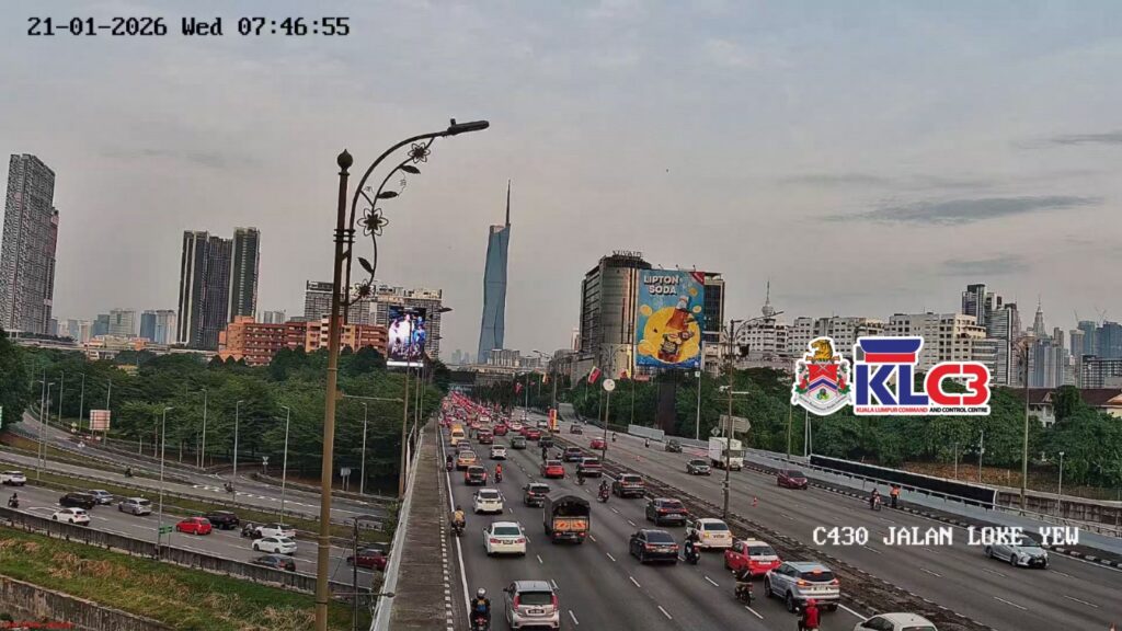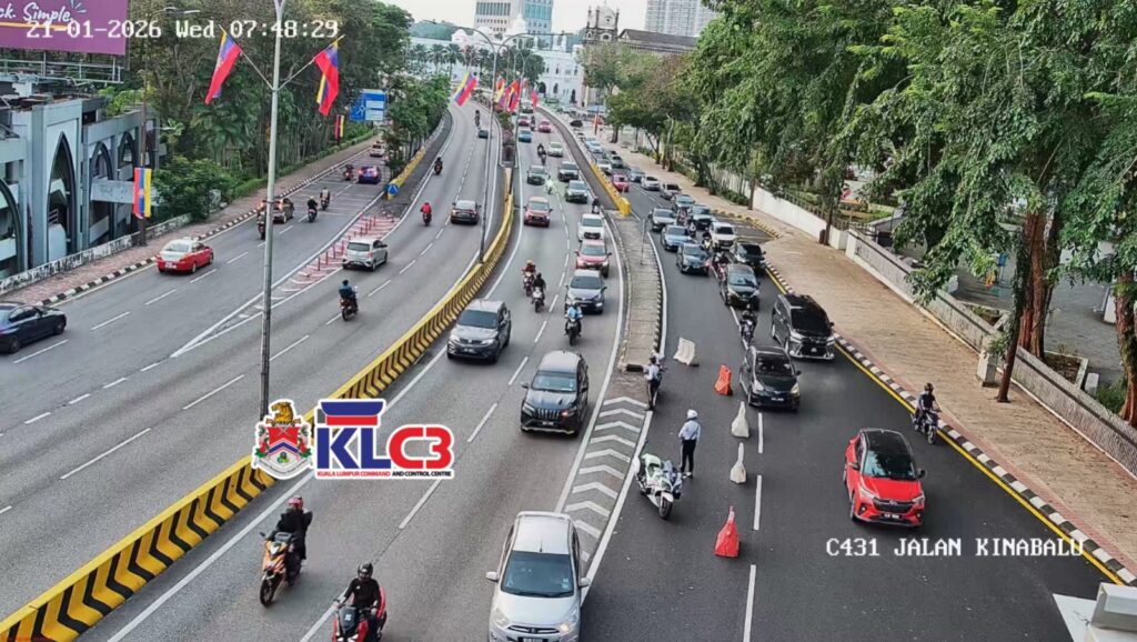 Aliran trafik tinggi, cuaca baik sekitar Pusat Bandar