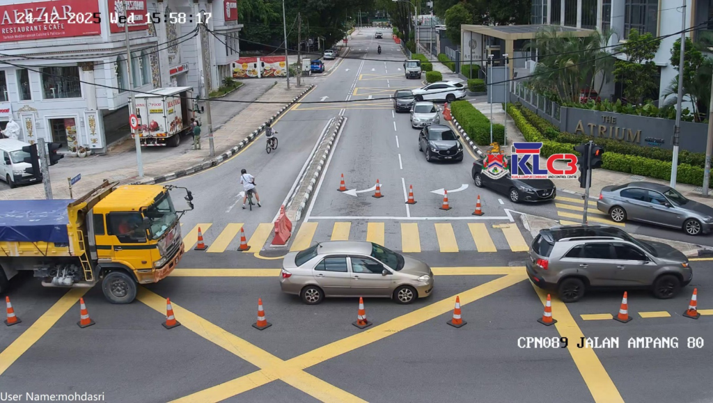 Laluan larangan Untuk Belok ke Kanan Sepanjang Jalan Ampang bermula dari susur Jalan Ru sehingga ke Persimpangan Jalan Tun Razak . Laluan Kontra Khas Bas sedang beroperasi.