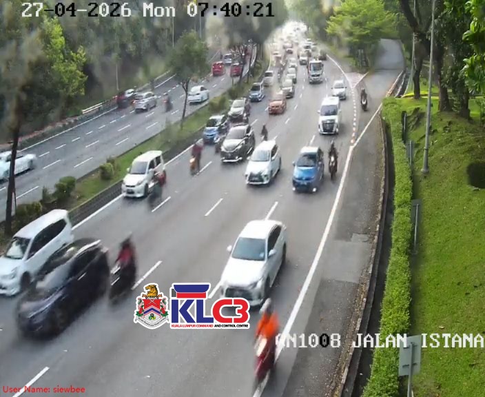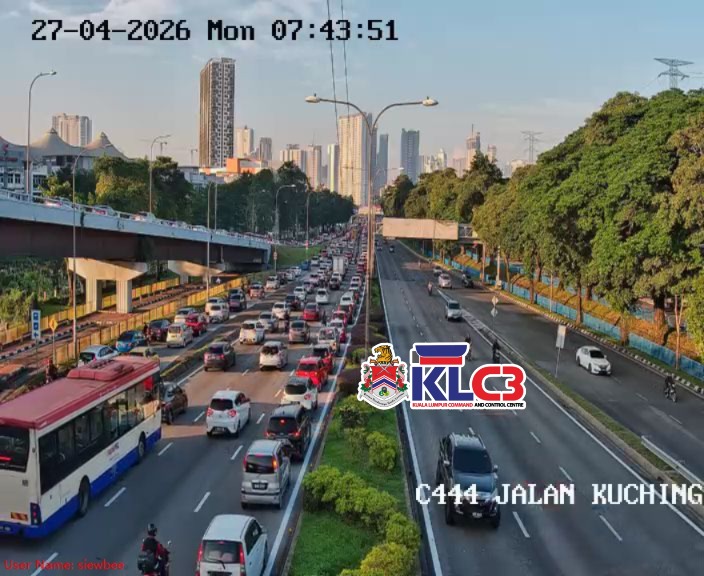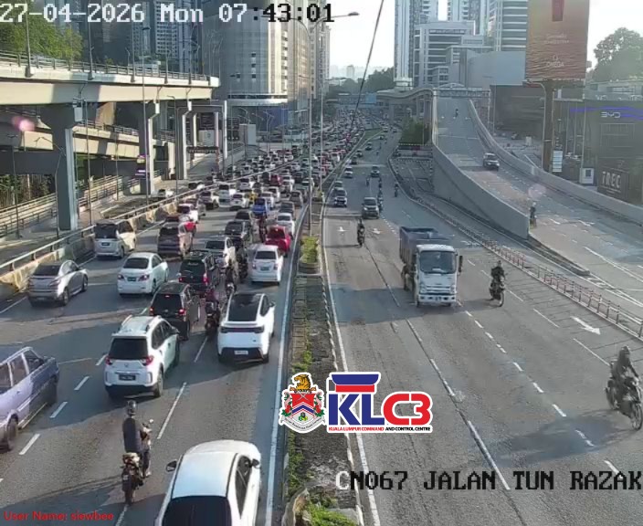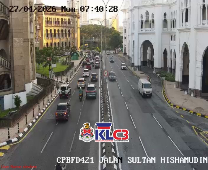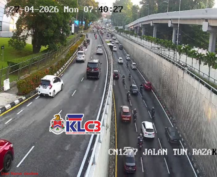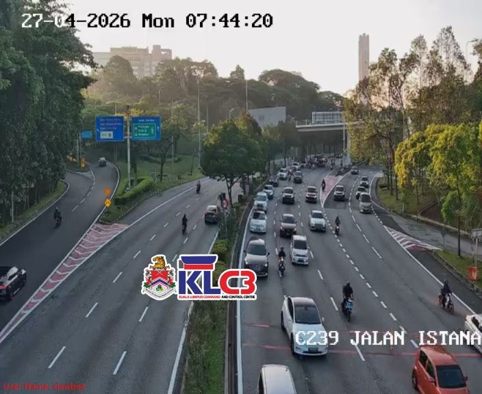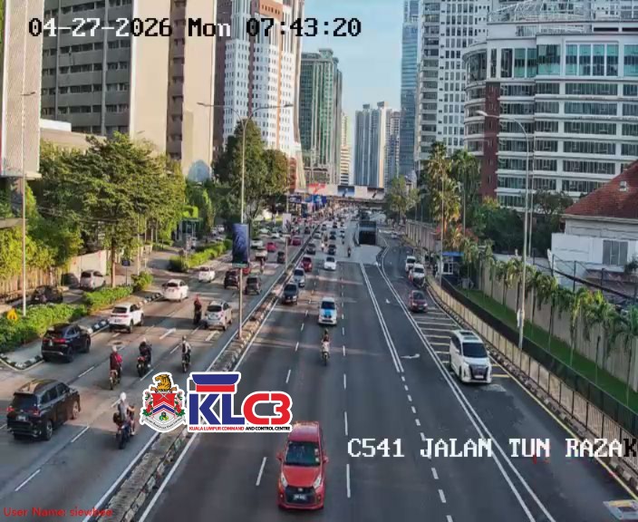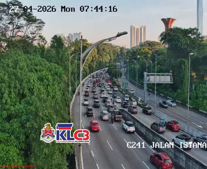 Aliran trafik tinggi, cuaca baik sekitar Pusat Bandar