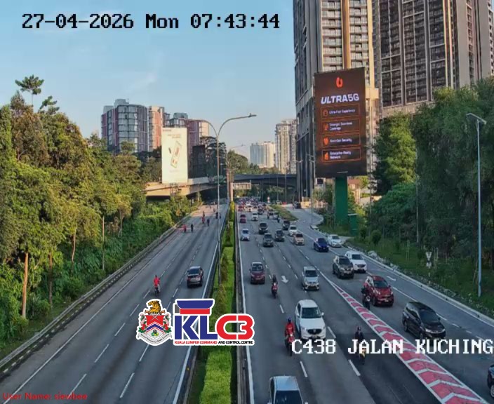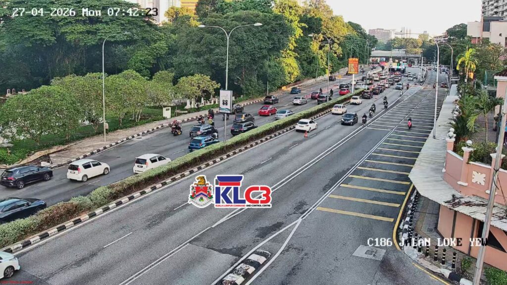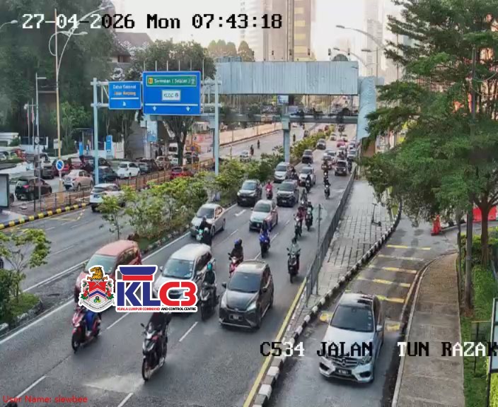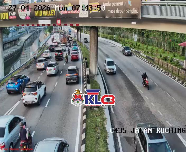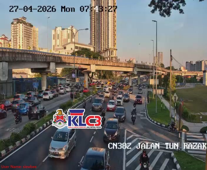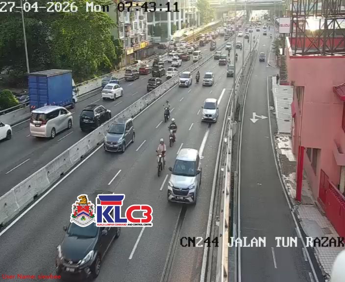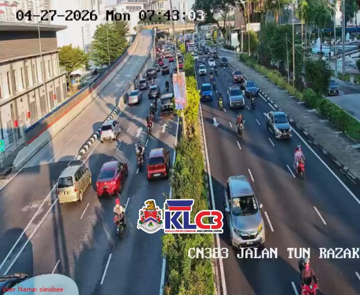 Aliran trafik tinggi, cuaca baik sekitar Pusat Bandar
